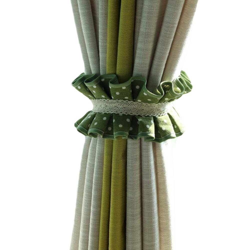 2 Pcs Cotton Curtain Tiebacks Lace Pleated Curtain Ties for Window Curtain Accessories, Green 2 Pcs Cotton Curtain Tiebacks Lace Pleated Curtain Ties for Window Curtain Accessories, Green