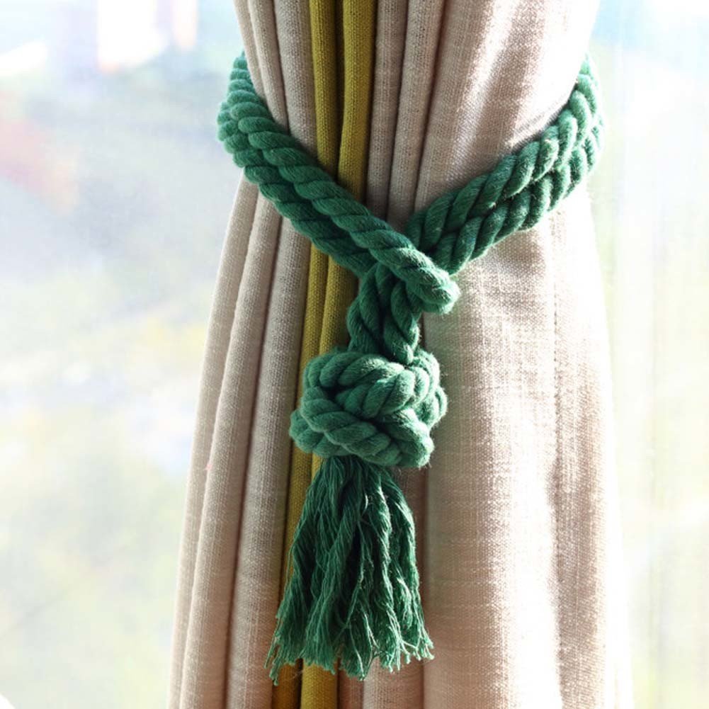 Home > 2 Pcs Curtain Tiebacks Handmade Cotton Rope Round Knot Drapery Tie Backs for Window Sheer Blackout Panels, Green
