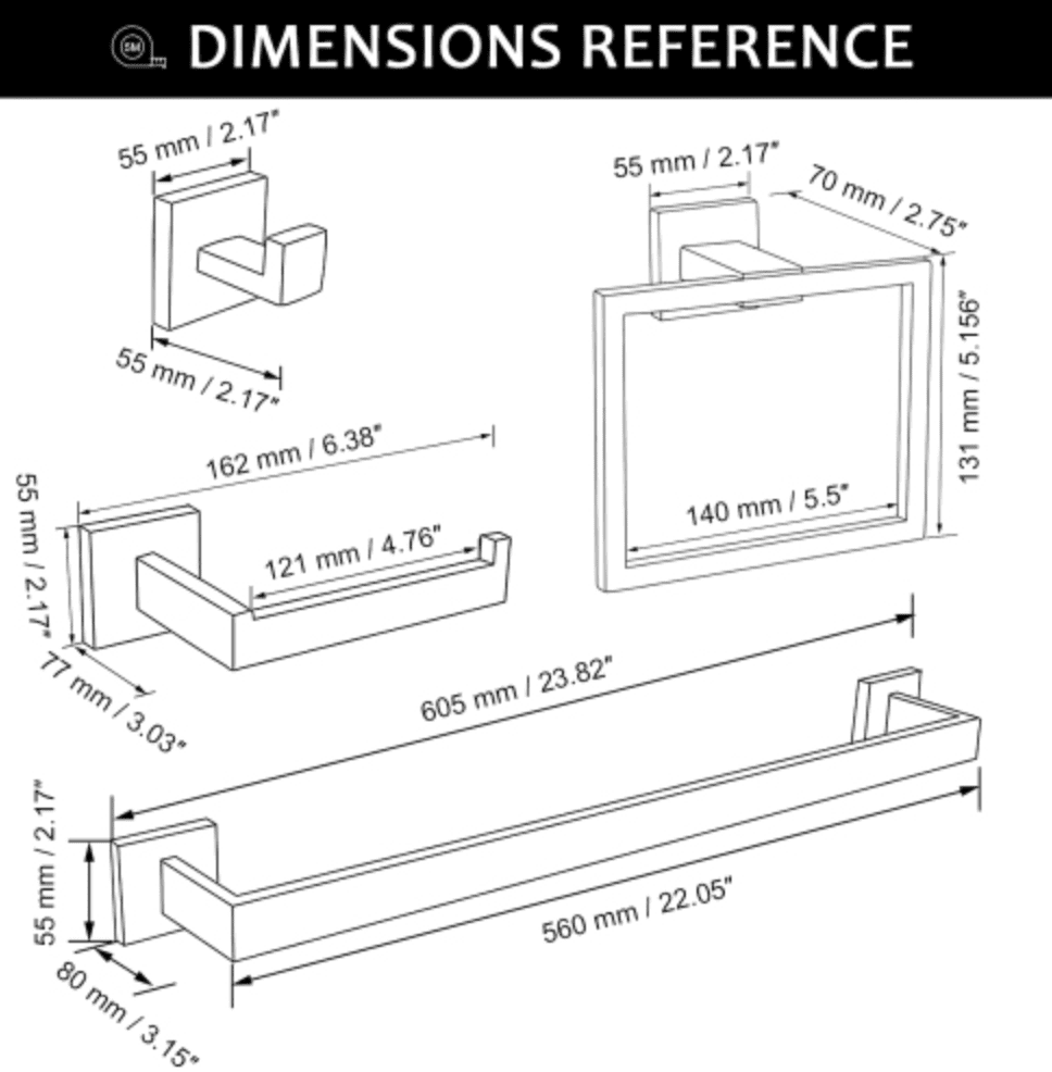 The bathroom hardware accessory sets are designed with clean lines and sturdy construction. Unique squared shape and concealed mounting hole add a touch of modern design to your bathroom, chamfering edges protect your body from scratching.