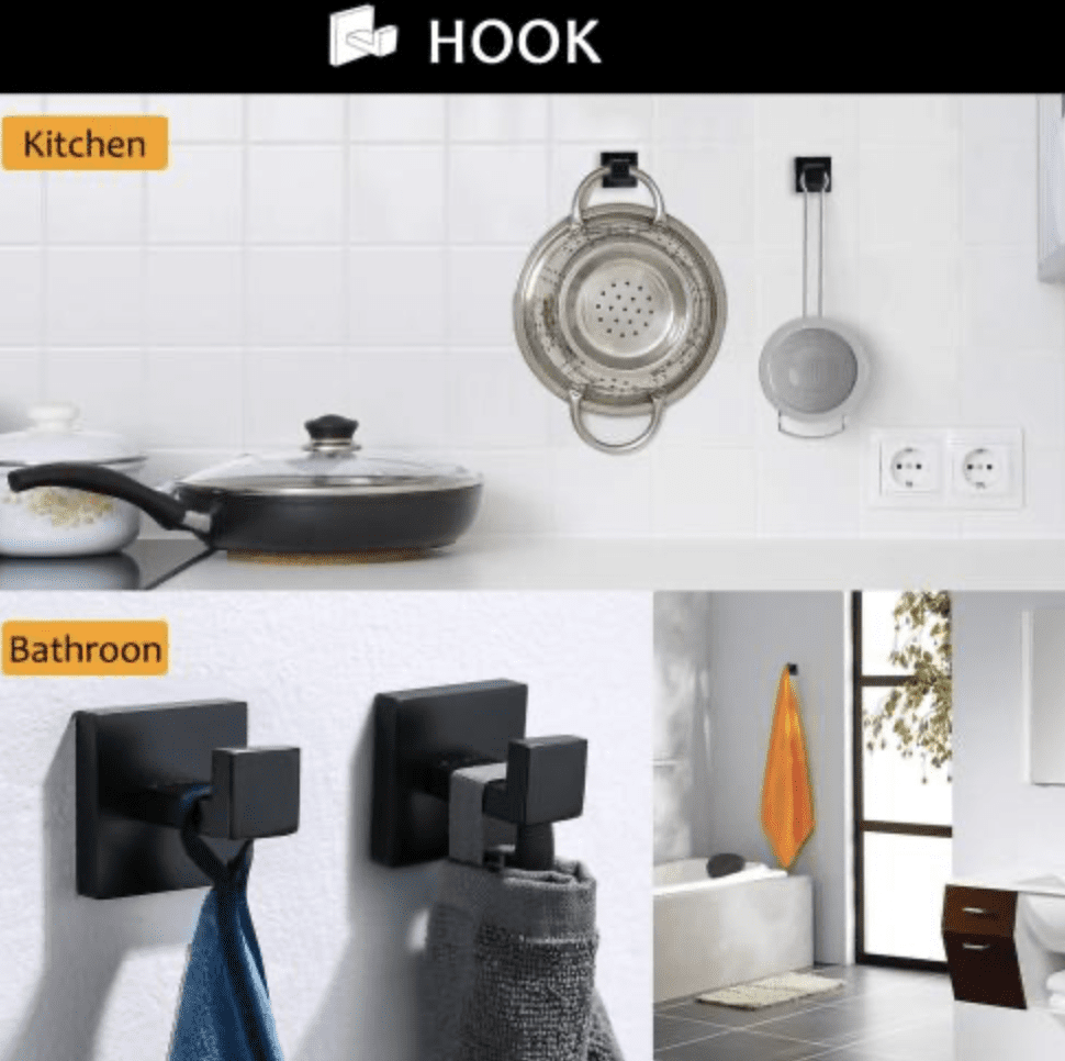 5-Pieces Includes: 1 x towel bar, 1 x toilet paper holder, 1 x towel ring, 2 x coat hook.
