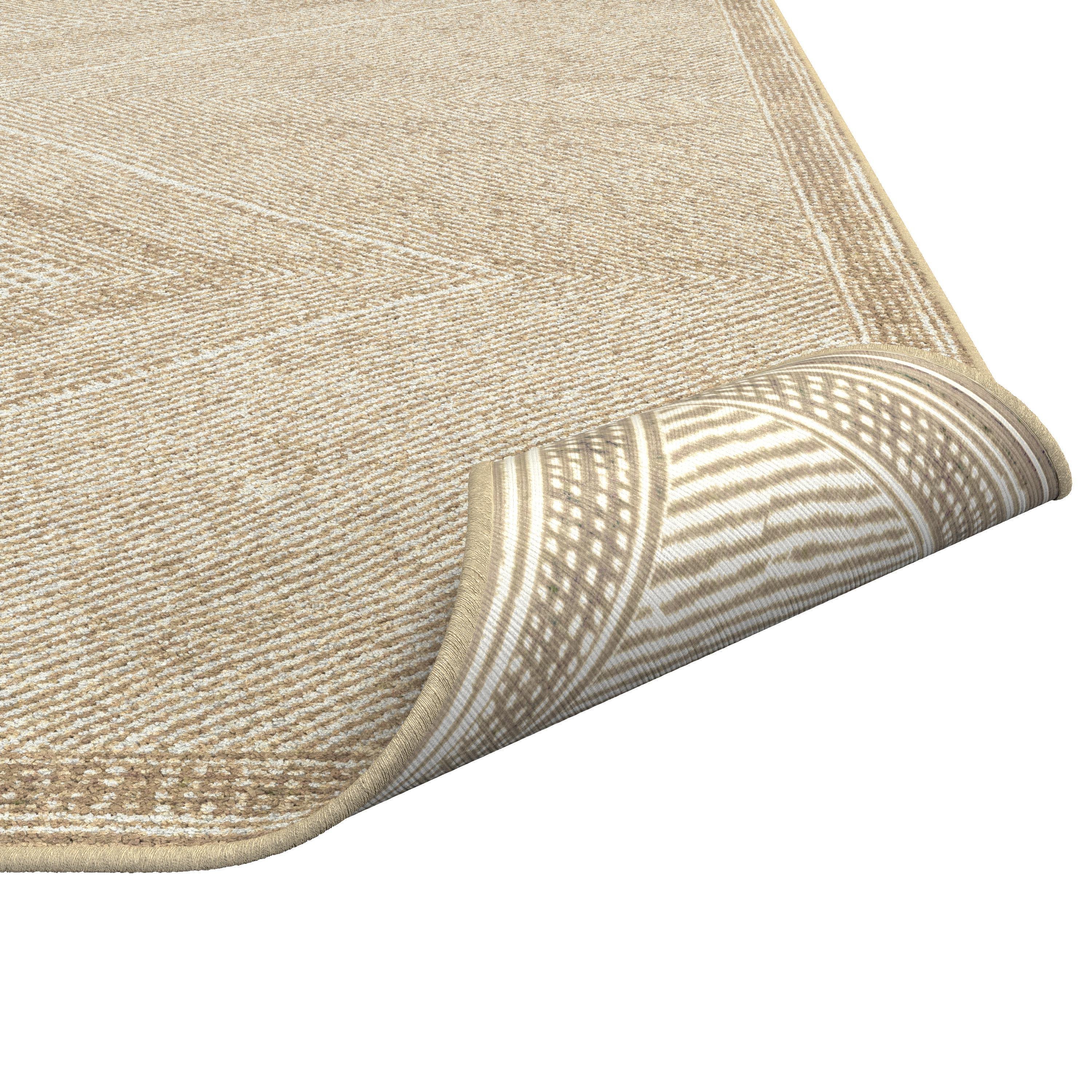 Timeless and classic, the Benzara area rug is crafted in Belgium from durable power loomed construction using beautiful, silky viscose yarns. The elegant color scheme will bring eye catching style to any space, while the Geometric Medallion design elements add interest and a unique look to this gorgeous area rug. The viscose material creates a light sheen depending on the direction the rug is turned giving the feel of a more expensive heirloom that has been passed down for generations. The low pile height is perfect for areas where door clearance may be required and higher traffic areas. A durable jute backing helps keep the rug in place, however a rug pad is recommended to prevent the rug from slipping (sold separately).Materials: 100% ViscoseA stylish geometric medallion design in beige and whitePower loomed in BelgiumSilky Viscose yarns are ultra soft to the touch Viscose fibers have a light sheen that makes the color appear lighter or darker depending on the direction the rug is turnedFlat pile height makes this rug perfect for entryways where door clearance can be a concernDurable construction is great for high traffic areasContains Latex: YesSize (ft/in): 5'3" x 7'6"Care Instructions: Spot clean as needed, Professional cleaning recommended