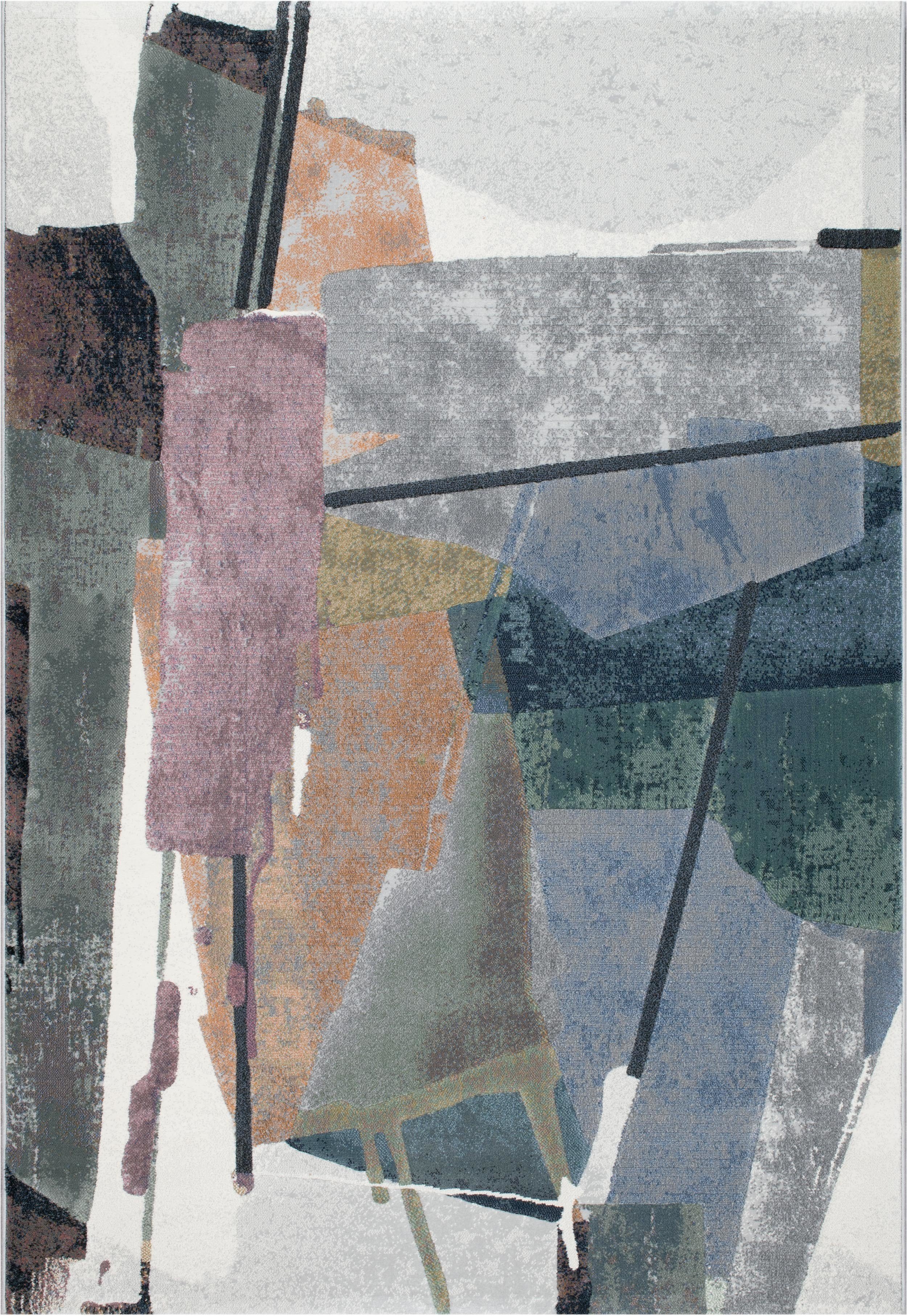 Essentials Abstract Orange, Sage, Blue, Gray, Ivory and Mauve Olefin Area Rug 8x10