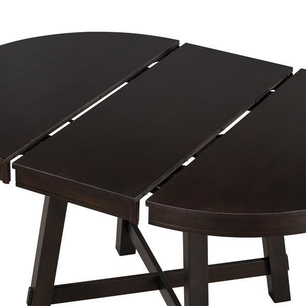 Farmhouse Round Extendable Dining Table with 16" Leaf Wood Kitchen Table (Espresso)