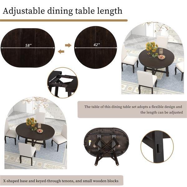 Twin over Twin House Bunk Bed with Roof , Window, Window Box, Door ,GreyJust give kids a lovely, interesting bunk bed featuring a wood house through their childhood, keep your kids as close to the natural atmosphere as possible, create their beautiful playground, where they are playing around the wooden house joyfully and intrigue their imagination about the unexplored world .The sturdy structure with full-length guardrails of the low height bed assures the kids of the sound and safe sleep. We prepared for a clear assembly instruction to guide you to fix our product easily.DescriptionProduct TypeHouse Bunk BedSizeTwin over twinColorGreyMaterial (main)Pine + Plywood +PBNumber of SlatsTop Bed: 14 pcs / Floor bed: nilSpring BoxNo needAssembly RequiredYesManual and HardwareYesCountry of OriginVietnamTechnical DetailsOverall Product Dimension81.7" x 57.8" x 86.9"Overall Product Weight134.5 lbsPackage DetailsPlease refer to the SpecificationBed Weight CapacityBed: 200 lbsSuggested Mattress Thickness6 inches or lessElegant round dining table: With a round tabletop and X-shaped base, this table represents an elegant and temperament atmosphere. Moreover, the adjustable dining table length makes this dining set suitable for any size room.Stable & Solid Structure: This dining table set is expertly crafted of MDF and rubber wood. The tabletop is finished with oak wood veneers. The use of veneers results in high-quality furniture that has flawless surfaces and consistent color tones that will not be subject to cracking.Adjustable dining table length: Taking into account the use of different scenarios, the table adopts a flexible design and the length can be adjusted. The round table's planked top is eased along the edges, then insert a leaf, and it can extend to accommodate additional guests. Table expands from 42''to 56'', seats up to 6.Exquisite Craftsmanship: The dining table with an X-shaped base and keyed-through tenons, and small wooden blocks on the tabletop edge make this dining table more stable and durable. The graceful natural wood texture on the tabletop is suitable for a farmhouse or modern-style dining room.Install Instructions & Weight Capacity: Full assembly required. Install instruction manual will be shipped with the products, and users can install all of the parts of this dining table without any errors as long as they follow the logical and clear instructions. The installation process would be more smooth if users prepare the drill themselves. The load-bearing capacity of the tabletop is 3 lbs.