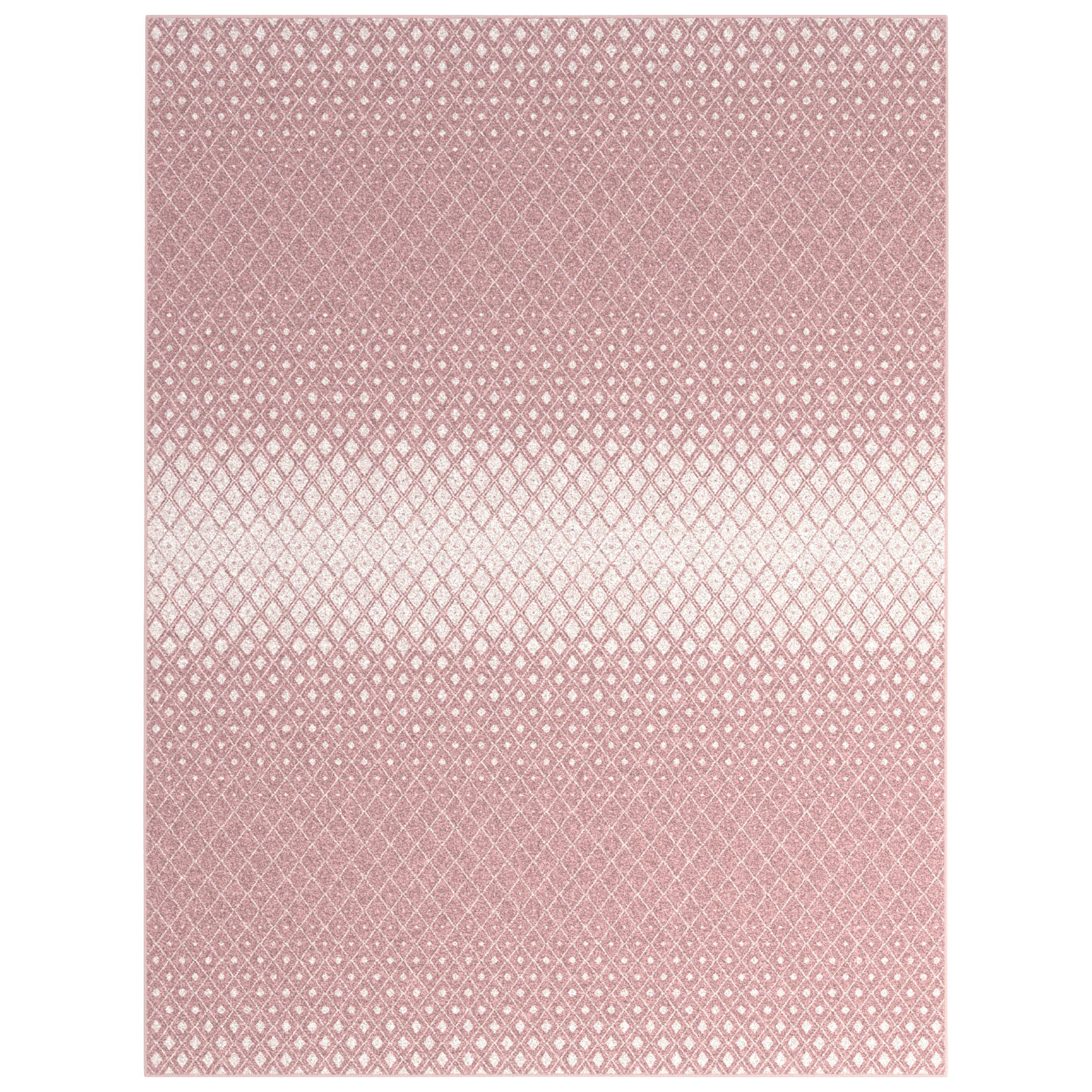 The Merriam Area Rug features a beautiful blend of ivory and pink viscose yarns that are ultra soft to the touch. A stylish geometric, ombre motif will enhance a variety of styles and decors while pulling the overall look of the room together. The flat pile height makes the rug perfect for areas where door clearance can be a concern. Machine woven in Belgium, the silky viscose yarns have a rich luster that can make the colors to appear lighter or darker depending on the direction or angle the rug is turned.Materials: 100% ViscoseStylish geometric, ombre motif in pink and ivory that will blend nicely with a variety of colors and decorsMachine woven using silky viscose yarnsFlat pile height makes this rug perfect for entryways and areas where door clearance can be a concernUltra soft hand feels great on bare feetSilky viscose yarns can appear slightly lighter or darker depending on the direction of the rugDurable construction is great for high traffic areasContains Latex: YesSize (ft/in): 5'3" x 7'6"Care Instructions: Vacuum regularly and spot clean as needed