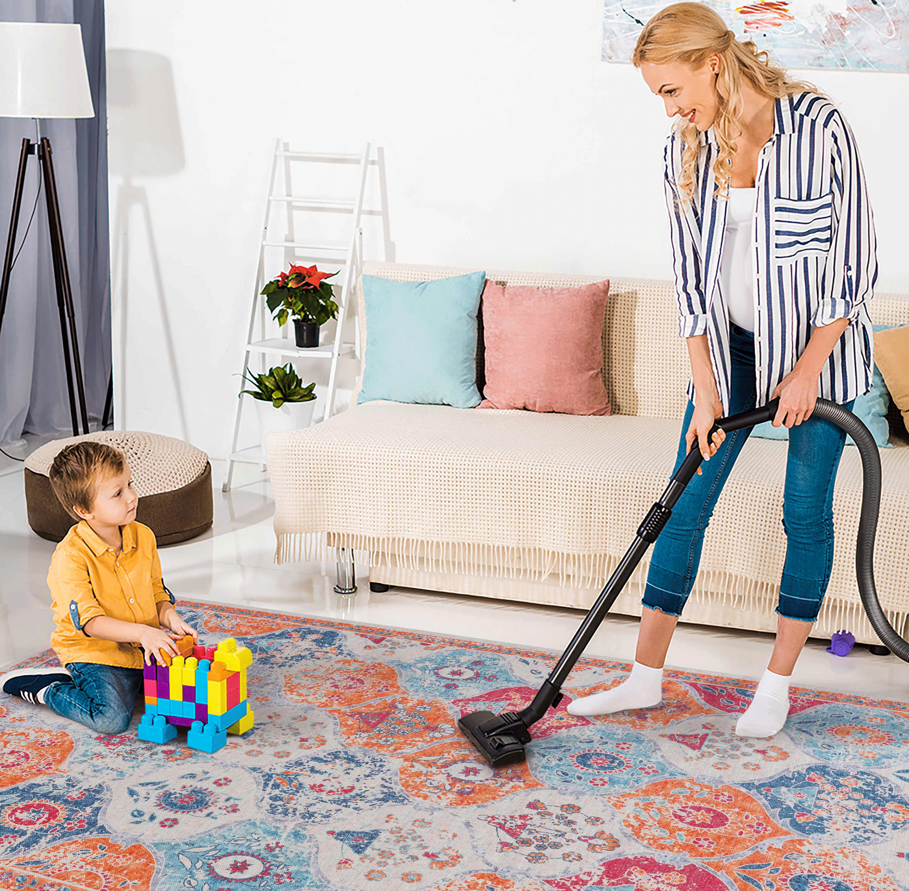 Looking for the perfect machine washable area rug that blends elegance and functionality? Look no further than our versatile area rugs, meticulously crafted to harmonize with every corner of your home. With its low-pile construction, effortlessly complements various indoor settings. Its special features, including machine washability, non-slip backing, and stain resistance, make it an ideal choice for high-traffic areas like the living room, dining room, bedroom, hallway, kitchen, or playroom.