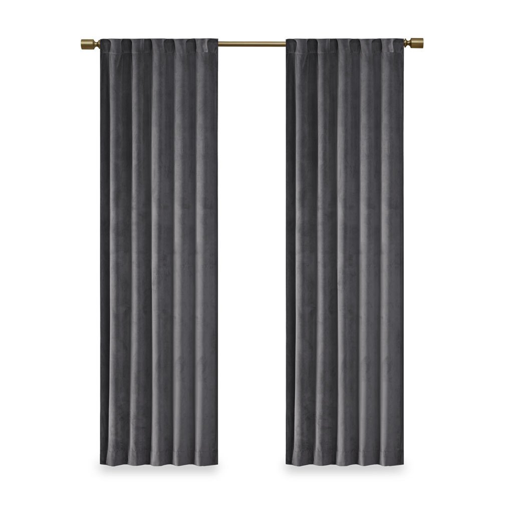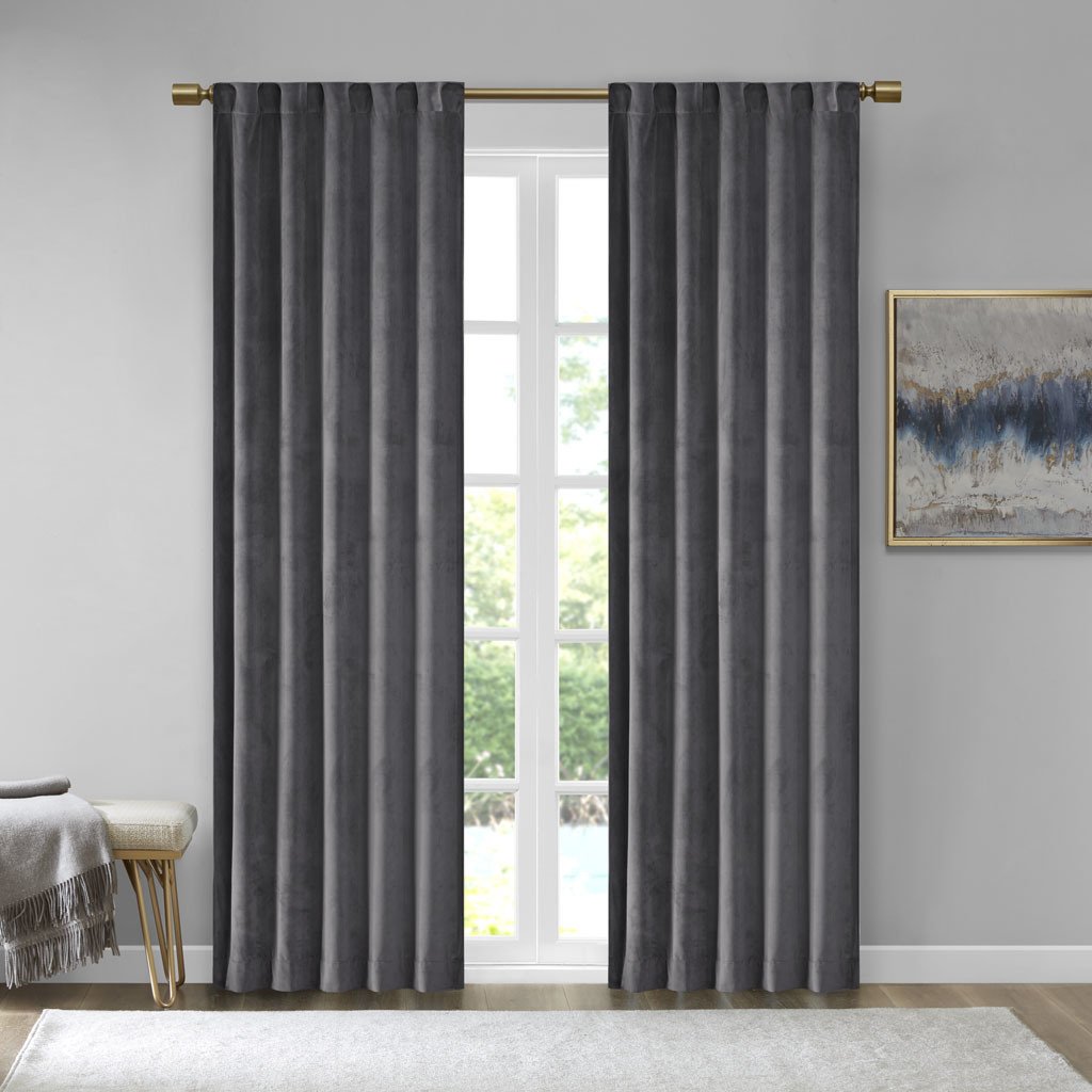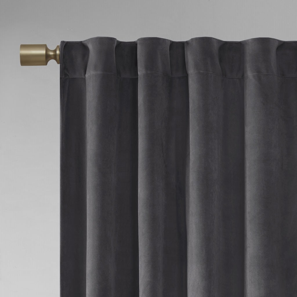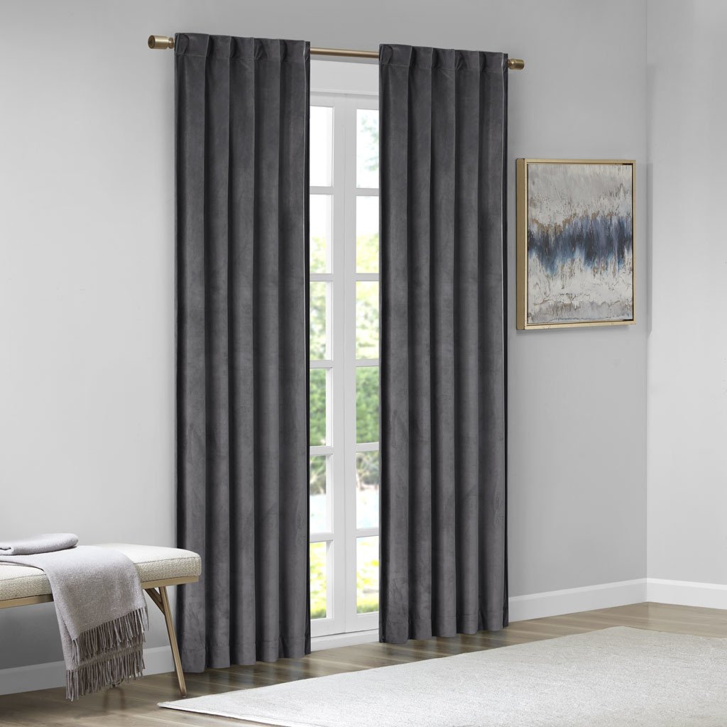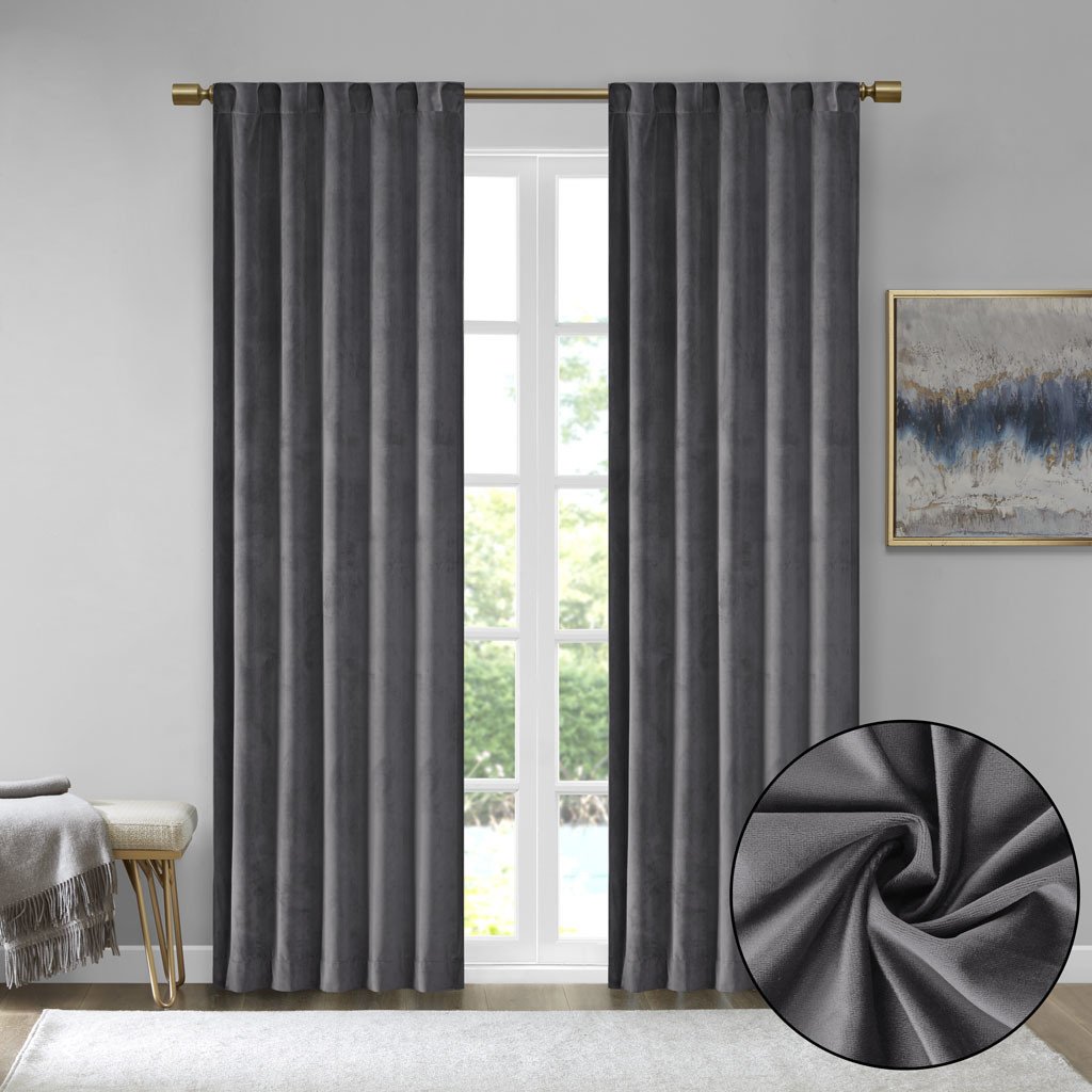 Accentuate your home with the 510 Design Colt Poly Velvet Window Panel Pair. Made from soft solid charcoal poly velvet, these velvet curtain panels exhibit a light sheen and plush texture that soften your decor. The rich, thick velvet fabric creates a room darkening effect and provides extra privacy. A rod pocket top and back tabs make these room darkening curtains easy to hang while also providing a clean tailored look. This window panel is also OEKO-TEX certified, meaning it does not contain any harmful substances or chemicals, ensuring quality comfort and wellness. Machine washable for easy care, this window panel pair add a luxurious touch to your living room or bedroom. Fits up to a 1.25' diameter rod.