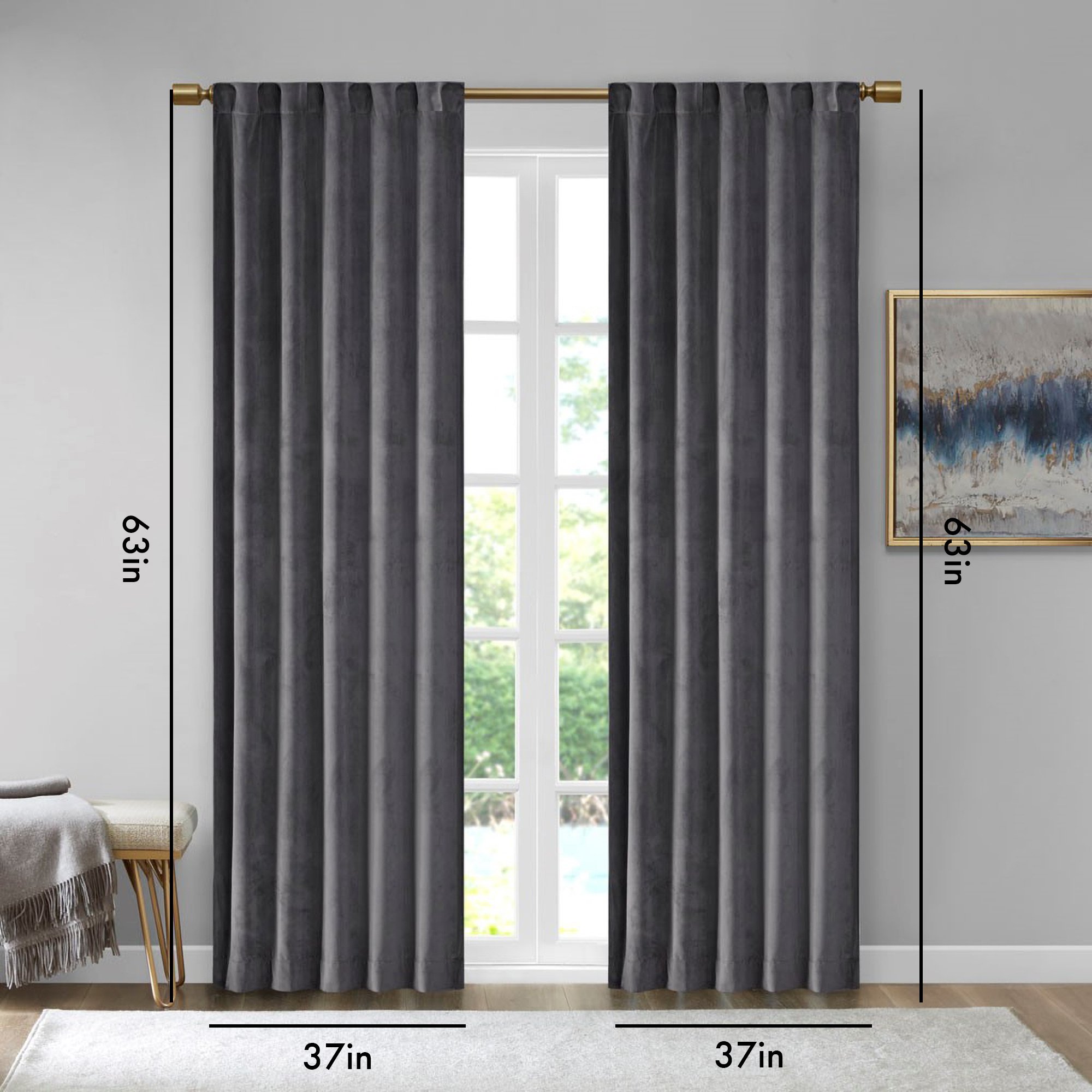 Each panel curtain measures 37" wide