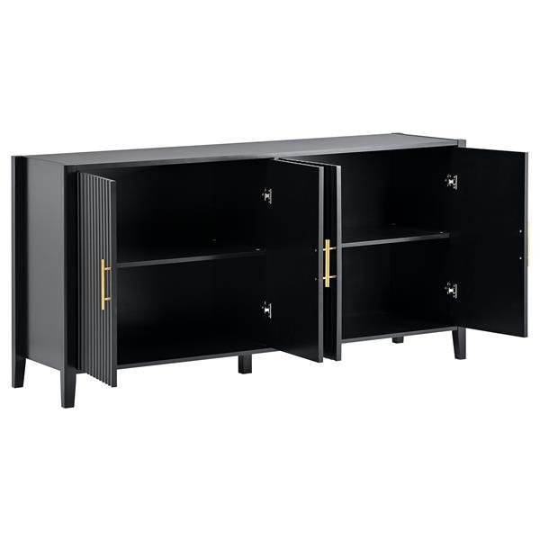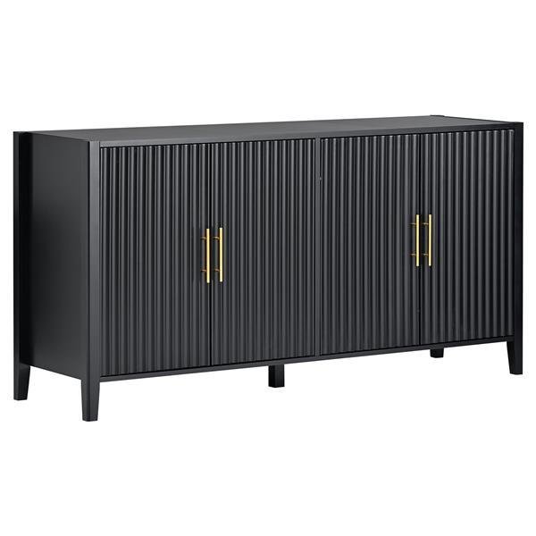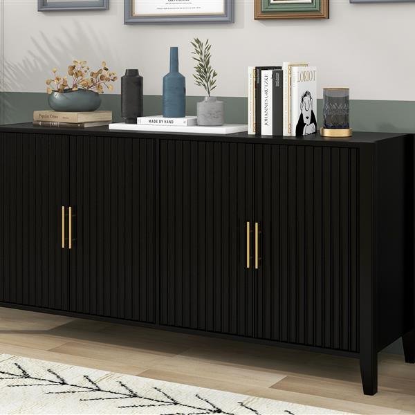 Modern TV Stand for 80'' TV with 3 Doors, Media Console Table, Entertainment Center[ For TVs Up To 80-inch ] The TV stand supports TVs up to 80-inch. Any TV under 80 inches fits perfectly with this cabinet . [ Unique design ] This color matching design makes this TV cabinet simple yet unique. It's perfect for modern minimalist decor but also fits in with other decor styles. [ Multi-Purpose Cabinet & Concealed Storage ] This TV cabinet is a storage master. In addition to the TV, you can also put TV components, game accessories, books, decorations and so on. With a simple, geometric construction, this entertainment center provides open shelving space for all of your beautiful decors, magazines, or books. [ Drop Down Doors Design ] The TV stand is equipped with drop down doors. Compared with traditional TV cabinets, you can access your favorite items more easily. [ Sturdy and Durable ] The cabinet is made of high-grade MDF and high-quality hardware. Excellent workmanship ensures beauty and durability. [ Easy Installation ] The assembly process is completed with simple step-by-step instruction.Each screw and pin has its own code and clear labels to help you assemble easily.Additional InformationColorWhiteStyleModernMaterialMDF BoardCapacityOverrall:165lbs Panel:77lbs Shelf:44lbsPackage IncludedTV Stand & Screw Pack & Instruction[Simple and Classic Style] The combination of the classic cabinet frame and the cabinet surface with fashionable design makes this cabinet unique, and it must be a beautiful landscape at home.[Manufactured for Quality] The entire cabinet is made of MDF and Solid Wood, and the five feet are epuipped with Sold Wood, which are not easy to damage.The desktop can bear 17 lbs, and the internal shelf of the cabinet can bear 11 lbs.[Meet Various Storage Needs] In addition to the stylish design, the capacity of this cabinet is also amazing. There are two layers of space inside the cabinet for storage, and the height of each layer reaches 12.8'' and the width reaches 29.5''.[Easy Assembly] Our cabinet shipped with easy-to-follow and detailed instructions, all of the hardware and pieces were labeled perfectly and easy to assemble.