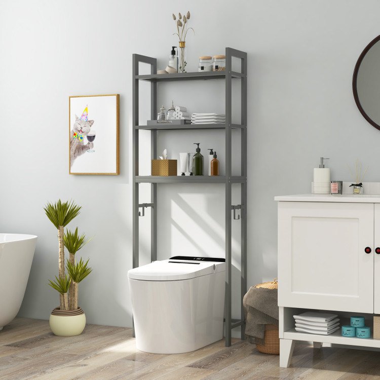 1.Ample Storage Space: This sturdy toilet rack offers a large storage capacity for your bathroom belongings such as paper, toiletries, cosmetics or towel. Moreover, with its 3-tire storage shelf design and additional 3 S hooks, you can keep your bathroom essentials organized and easily accessible.