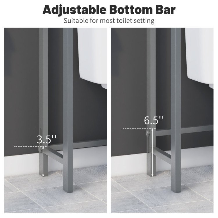 4.Safety & Clean Design: Designed with safety in mind, this toilet stand features 2 set of anti-tipping device to ensure a secure and stable installation. Moreover, the premium metal mesh offers convenient cleaning compared to non-draining shelf, preventing moisture buildup and making cleaning a breeze.