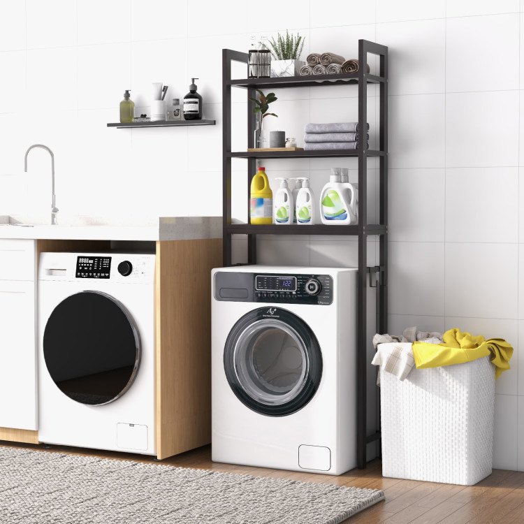 1.Ample Storage Space: This sturdy toilet rack offers a large storage capacity for your bathroom belongings such as paper, toiletries, cosmetics or towel. Moreover, with its 3-tire storage shelf design and additional 3 S hooks, you can keep your bathroom essentials organized and easily accessible.