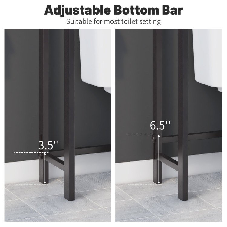 2.Space-saving Solution: Designed with an small bottom space, this toilet stand is a perfect space-saving solution for your bathroom. In addition, the adjustable bottom slat ensures a perfect fit suitable for most toilet setting, it can fit neatly beside your toilet, making efficient use of limited bathroom space.