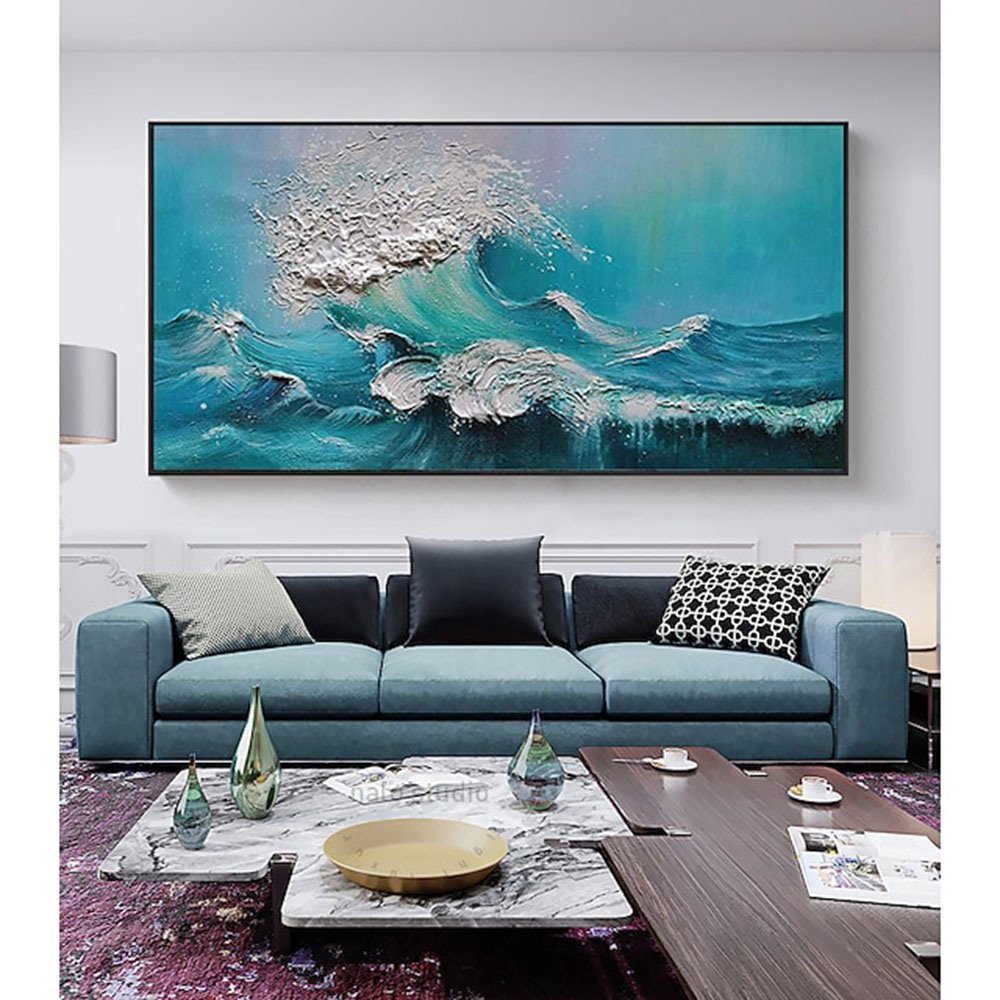 Home > Handpainted Oil Painting CanvasWall Art Decoration Abstract Knife Painting Seascape Blue For Home Decor Living Room hallway bedroom luxurious decorati