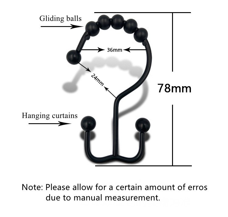 3.Roll-on balls of shower curtain hooks can glide smoothly and fast along the shower rod.