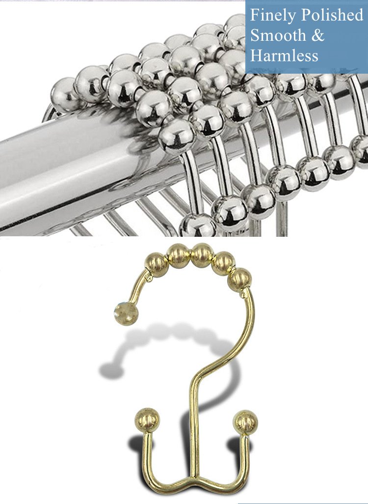 3.Roll-on balls of shower curtain hooks can glide smoothly and fast along the shower rod.