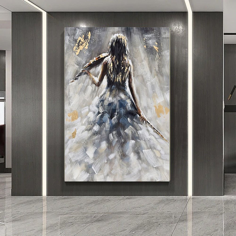Home > Oil Painting 100% Handmade Hand Painted Wall Art On Canvas Vertical Abstract Violin Women Back Home Decoration Decor