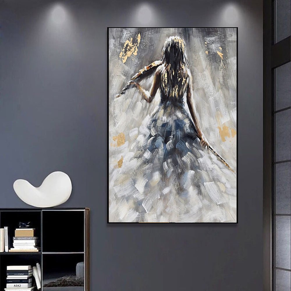 Home > Oil Painting 100% Handmade Hand Painted Wall Art On Canvas Vertical Abstract Violin Women Back Home Decoration Decor