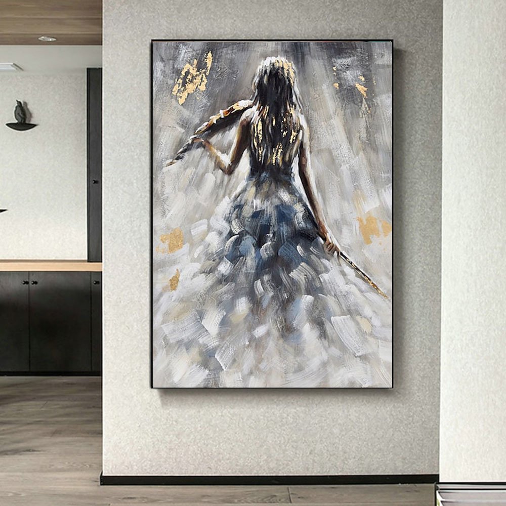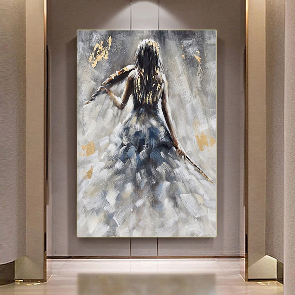 Home > Oil Painting 100% Handmade Hand Painted Wall Art On Canvas Vertical Abstract Violin Women Back Home Decoration Decor