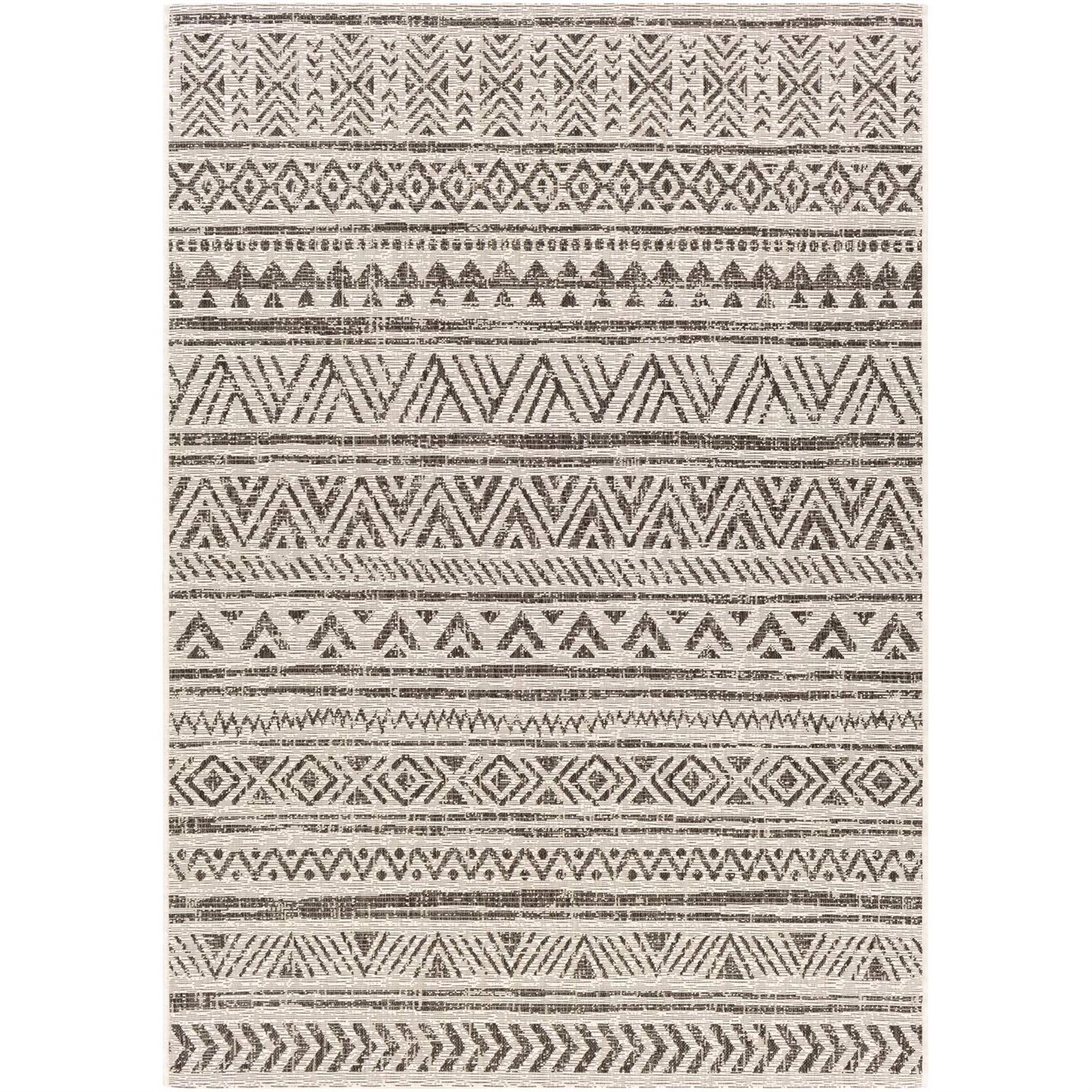 • 5 ft. x 8 ft. Black Off-White Chevron Coastal Boho Style Indoor Outdoor Area Rug