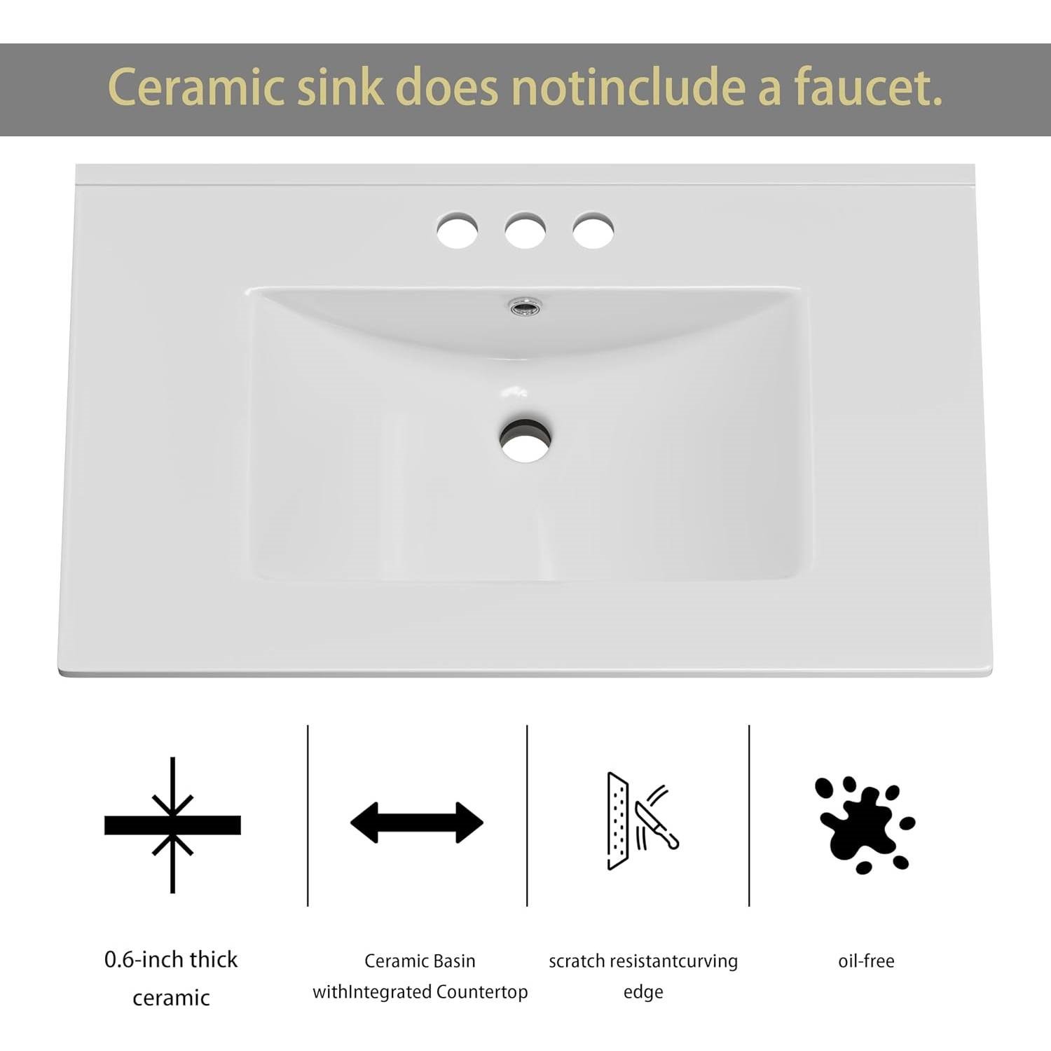 • Modern 30-inch Gray Wood Finish Bathroom Vanity with White Ceramic Sink