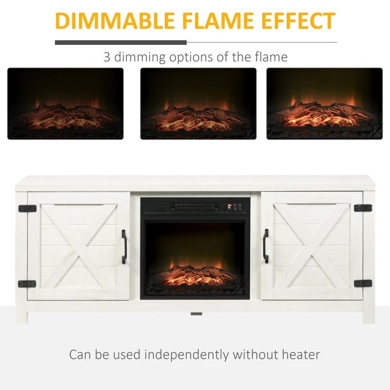 Say hello to the apex of ambience with this Rustic White Electric Fireplace Mantel Storage TV Stand Fits Up To 60 Inches w/ Remote Control. Experience a warming fireplace enclosed in a beautiful white wood grain cabinet that complements any motif. Use the mantel to show off photos, a TV stand, or both. This is a wonderful conversation piece that adds pure warmth even when the heater is off. This cabinet fireplace work independent of the heat, and is powered with 1,400-watts. You can turn on the electric fireplace on the hottest day of the year or keep the heat off on the coldest day of the year. Provides a generous amount of heat for the space it occupies, clocking in at an area of 377 sq. ft.