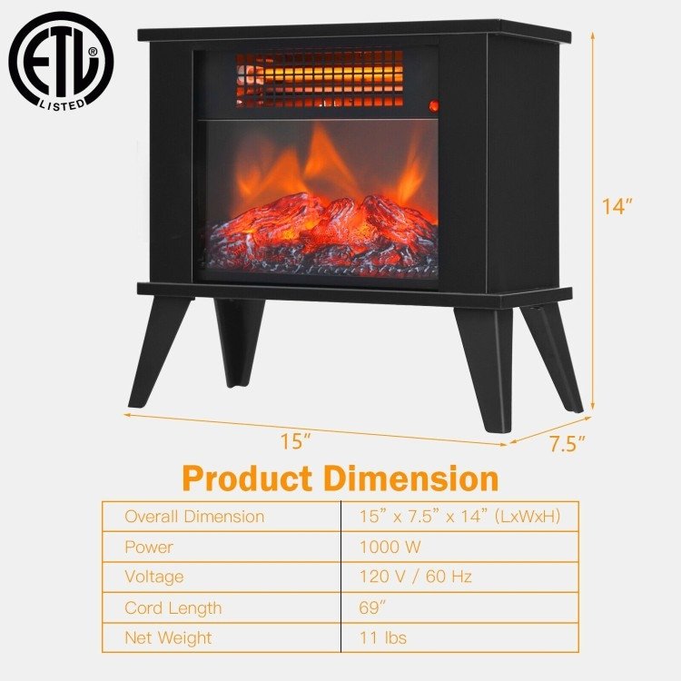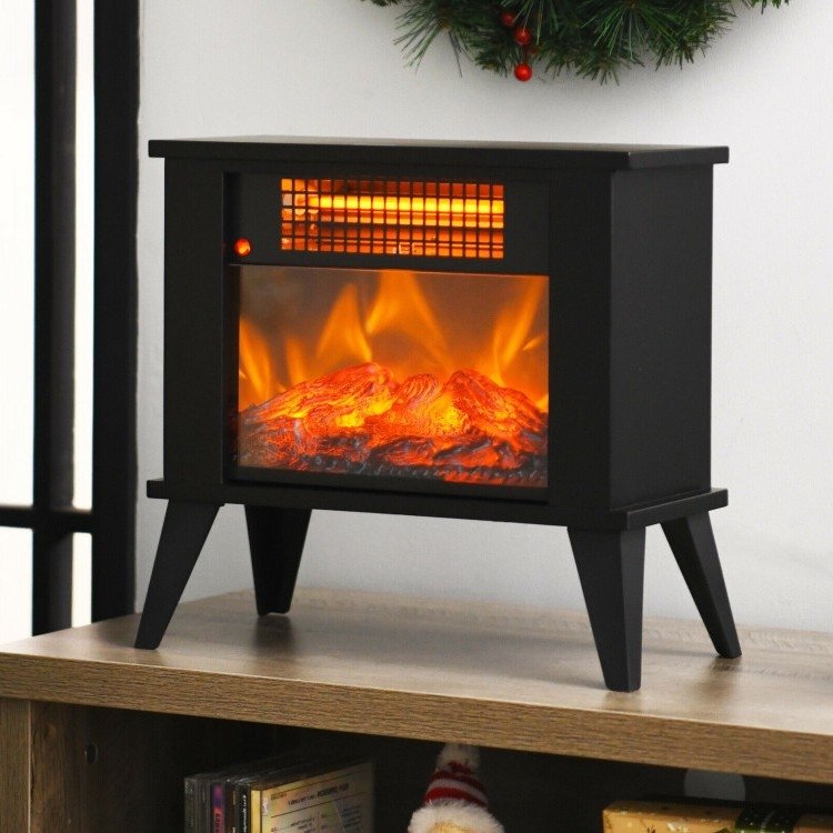 This Small Portable Electric Fireplace Heater w/ Realistic Flame Effect is the perfect solution for your winter blues! This infrared heater will create a warm and cozy ambiance for you in cold winter with high efficiency. Has overheating protection, tip-over protection and flame protection effectively keep you protected. Designed with low-noise operation and thermostat system, the heater provides warm and quiet environment when you are working, resting and reading. The simple control panel allows you to conveniently adjust the temperature and flame effect. This lightweight mini heater saves a lot of effort for you to move and store.