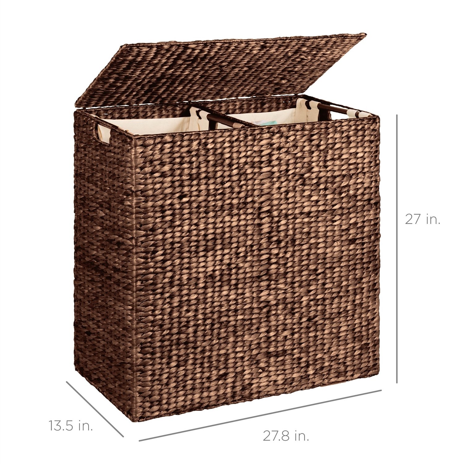 Espresso 2-Bin Handwoven Hyacinth Linen Liner Laundry Hamper w/ Handles Espresso 2-Bin Handwoven Hyacinth Linen Liner Laundry Hamper w/ Handles Espresso 2-Bin Handwoven Hyacinth Linen Liner Laundry Hamper w/ Handles Espresso 2-Bin Handwoven Hyacinth Linen Liner Laundry Hamper w/ Handles