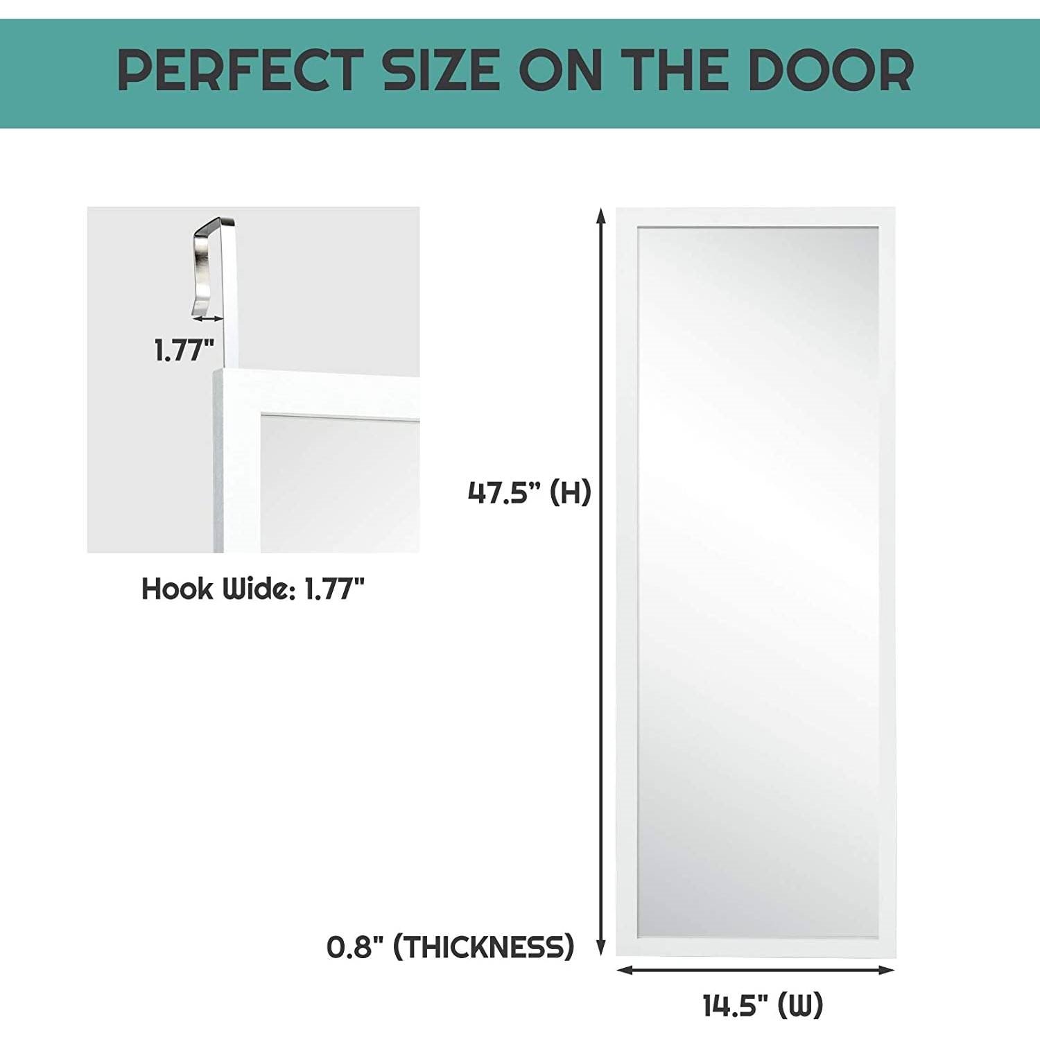• This 47.5” x 14.5” full-length mirror provides a large field of vision, allowing you to check your makeup and outfit from head to toe before going out. The width of each hanger is 2", suitable for most doors of normal thicknesses.