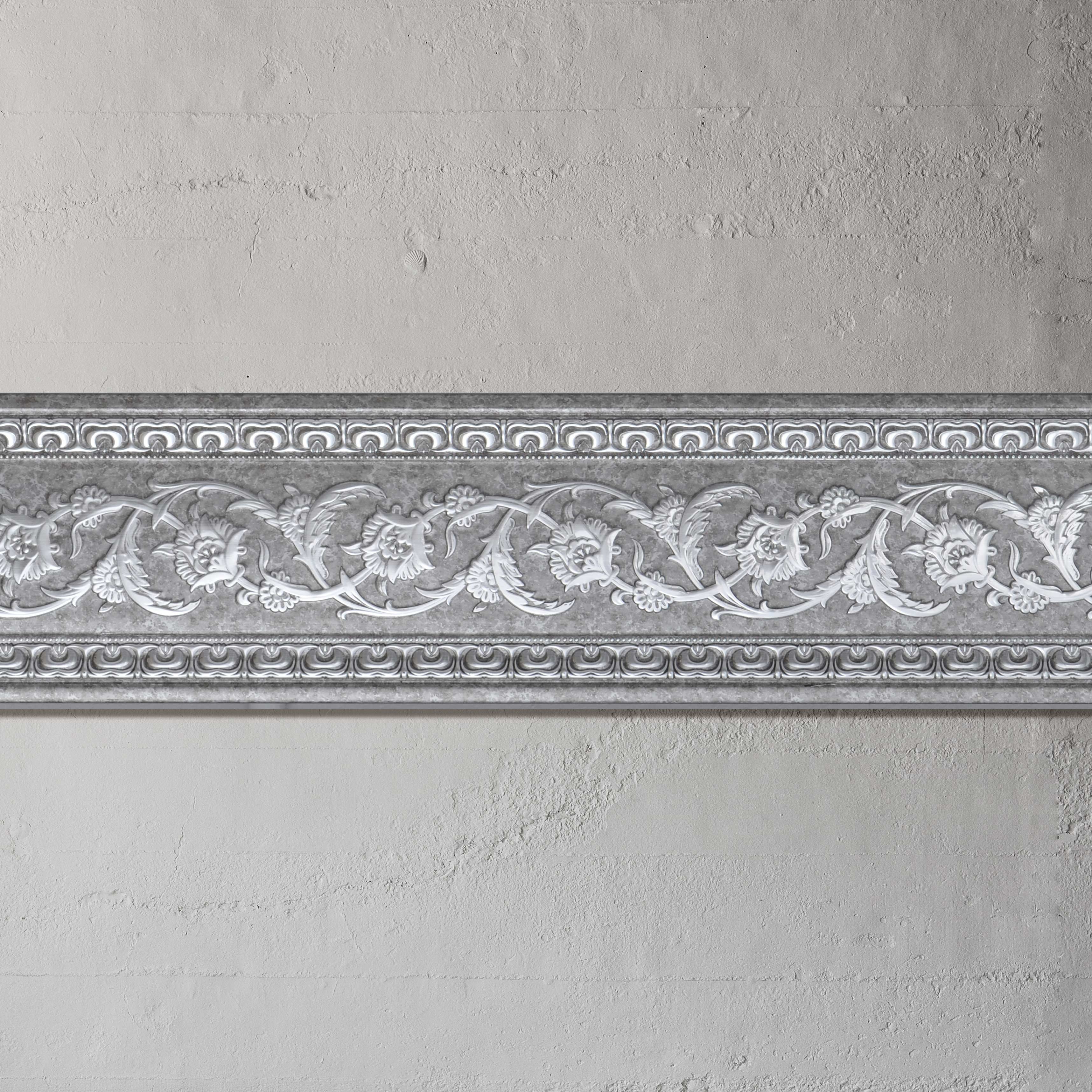 Masterpiece molding is a very special innovative exclusive product that enables home owners to apply beautiful finished molding right out of the box. They are sold in packages of 6 pieces of 13' molding per box with each box containing 78 linear feet enough to do 1 huge 14 x 22 foot room with 6 foot for any waste. This Chair rail has a raised gold scroll floral patter over an elegant French white base tone . While chair rails are conventionally used to break up a wall as a border normally around waste high , this chair rail can also be combined with the matching gold floral and white crown molding to create a very powerful addition to the crown for an even bigger and more dramatic cap to your wall. The fact that it comes prefinished out of the box the home owner can install at any time with no fair of mess or damage to any existing room decor. It can be easily nailed to the wall with simple finishing nails which the nails can virtually be hidden by locating the nails into the design elements of the molding and gently nailing or glued. The molding is made of Polystyrene and as such is durable , flexible , light weight and will never shrink like conventional wood molding . Masterpiece molding by AFD is an innovative solution that will add value and beauty to your home or project and prior to its creation the idea of adding such beautifully finished molding would have required many professionals and a very expensive and messy installation.