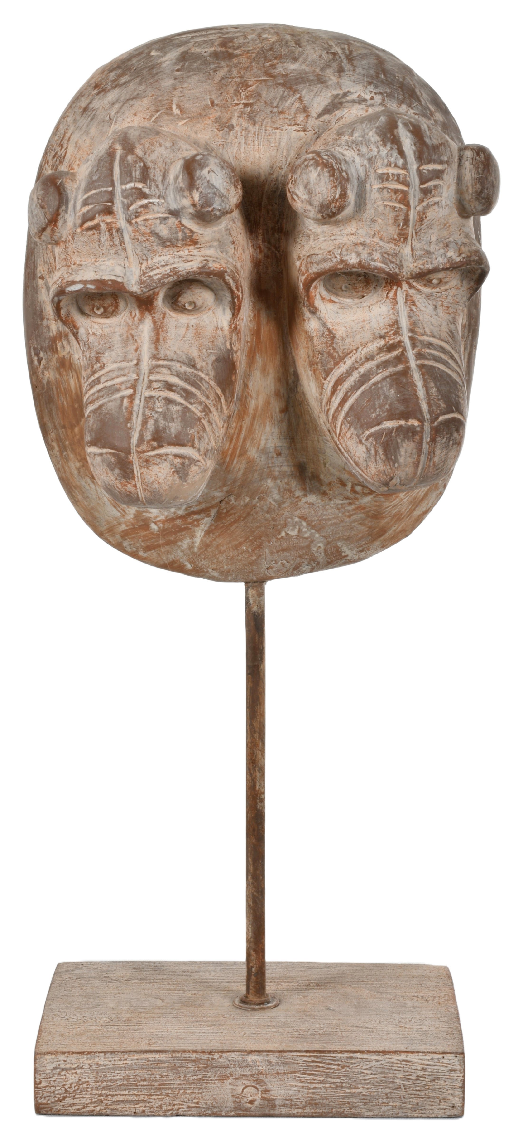Carved with intricate detail, this piece is both an homage to traditional craftsmanship and a statement of cultural heritage. The carefully sculpted features and the regal appearance of the mask give it a commanding presence, making it a perfect addition to any collection or home décor that values history, spirituality, and artistry.