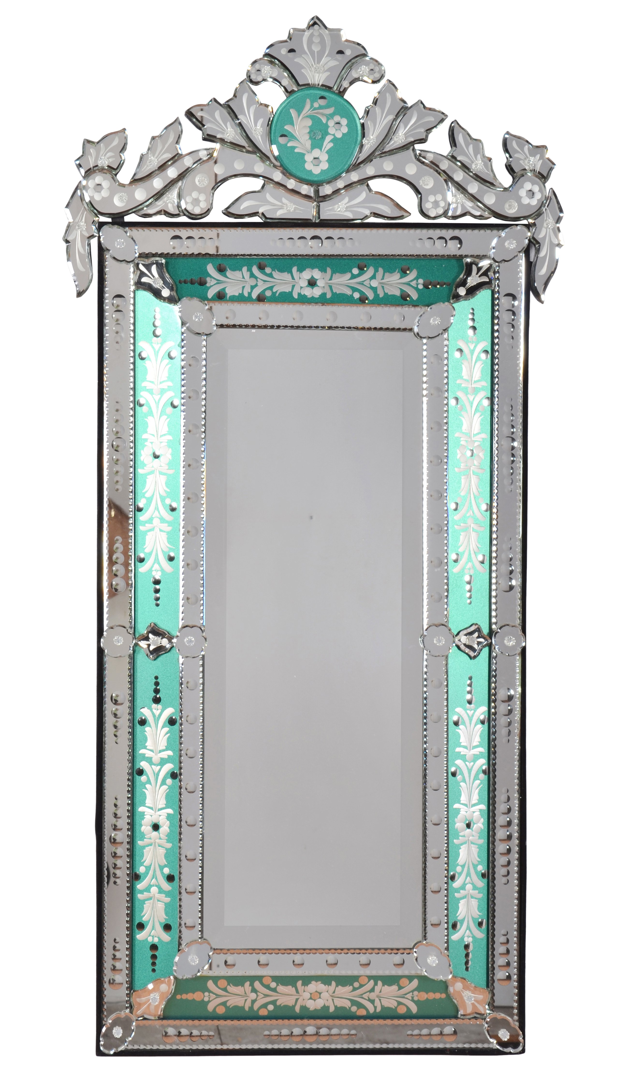 Striking Venetian Style Mirror With Seafoam Border 47.24" Tall