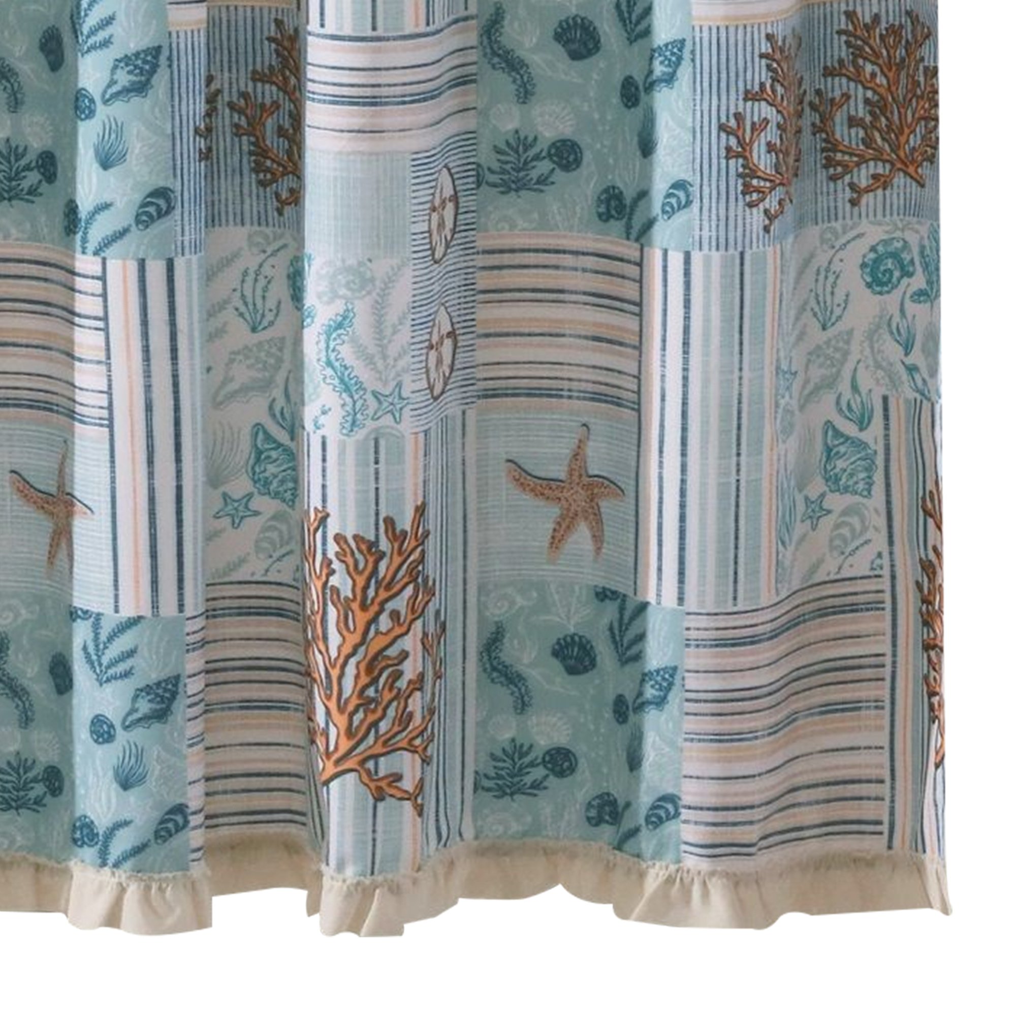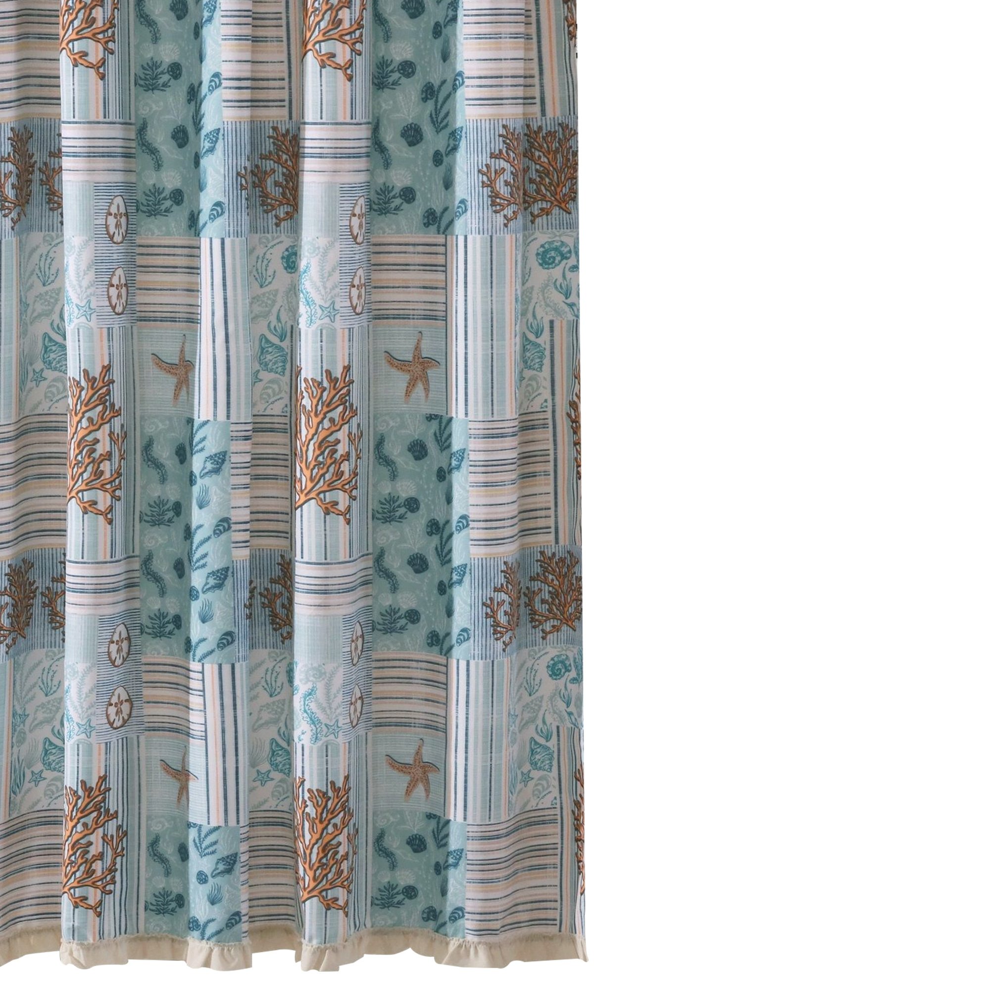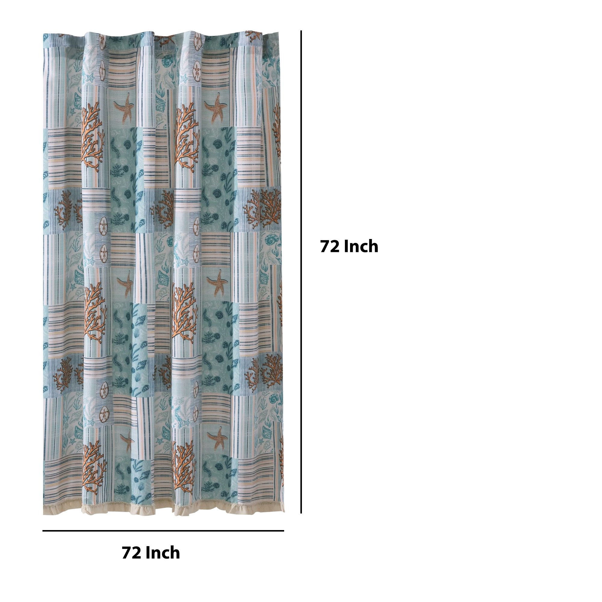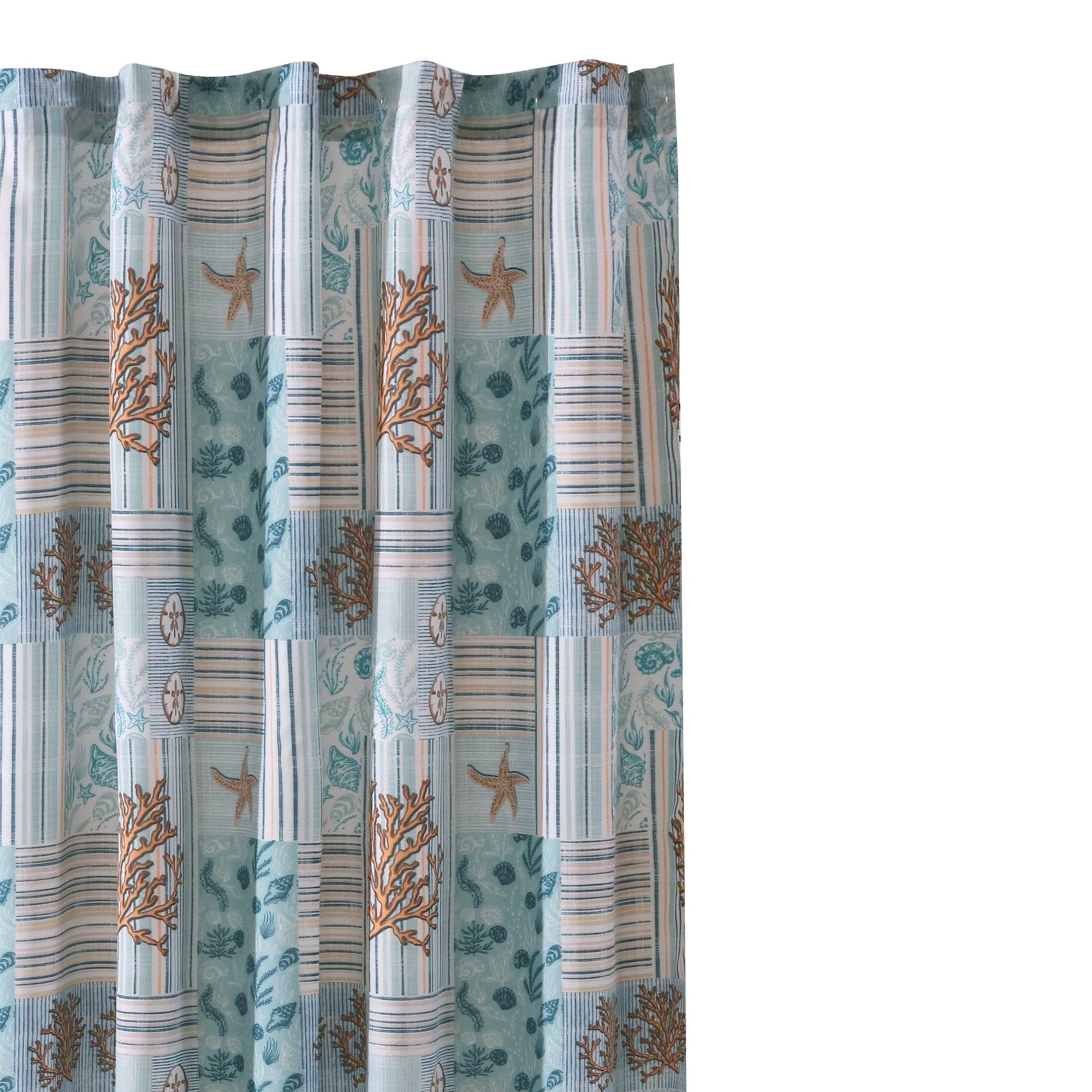 Sea Life Print Shower Curtain with Button holes, Blue and Brown