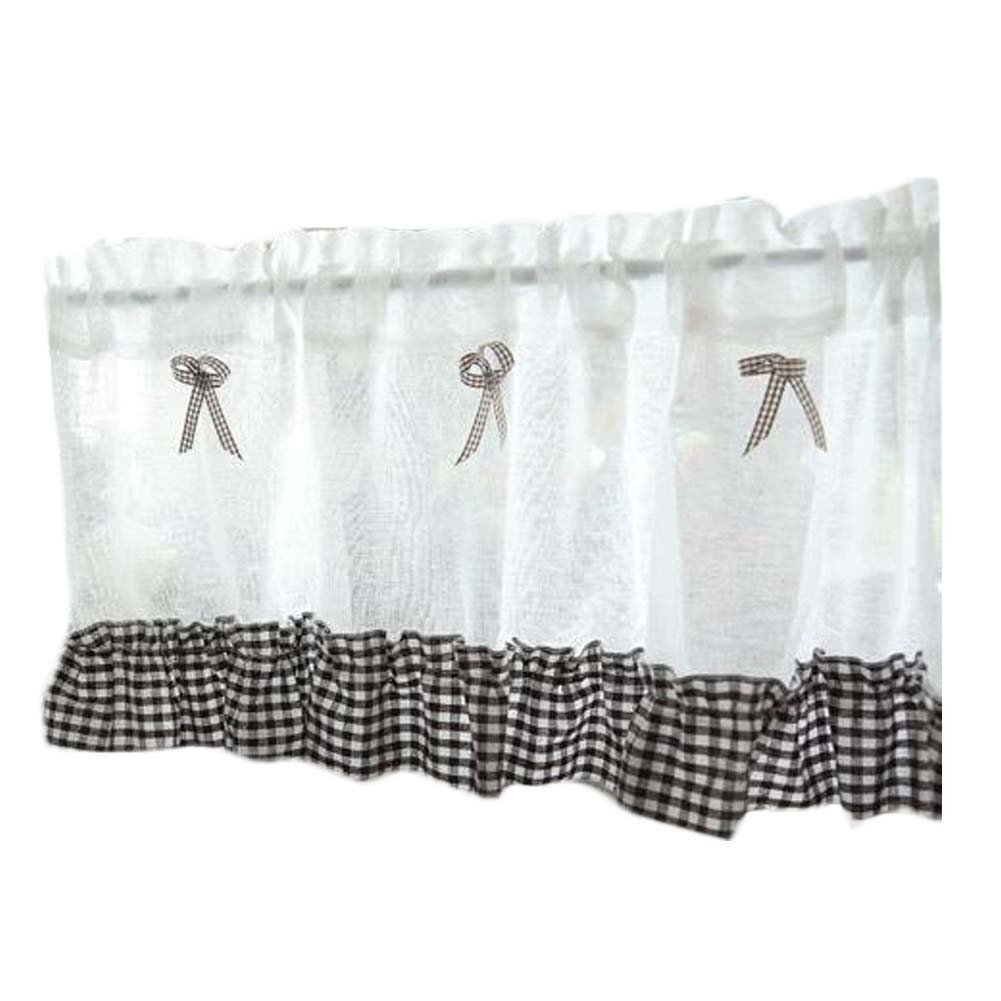 Semi Sheer Brown Grid Doorway Curtain Valance Half Curtain Bowknot Kitchen Short Curtain Tier cafe Curtain,59x15 inch Semi Sheer Brown Grid Doorway Curtain Valance Half Curtain Bowknot Kitchen Short Curtain Tier cafe Curtain,59x15 inch