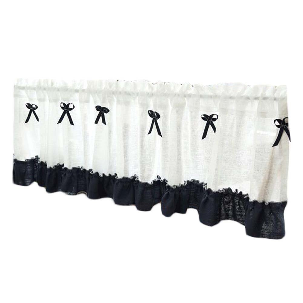 Home > Semi-Sheer Navy Blue Door Curtain Valance Half Curtain Bowknot Kitchen Short Curtain Tier cafe Curtain,59x15 inch