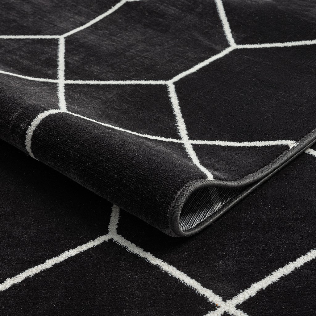 Geometric trellis design in contrasting shades of black and cream