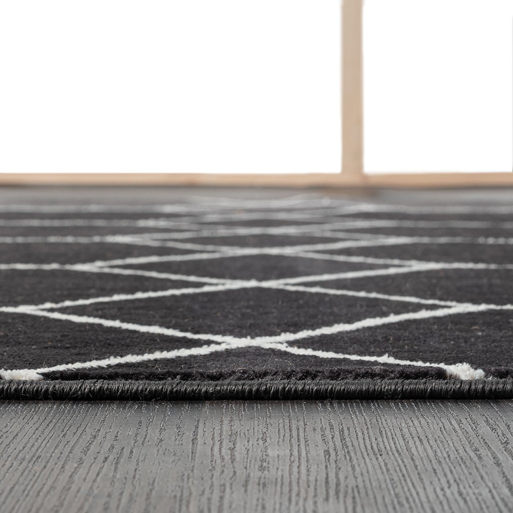 Elevate your home with the modern flair of Madison Park's Averie Trellis Geometric Black and Cream Woven Area Rug. Made in Turkey, this area rug features a black and cream geometric trellis pattern creating a bold contrasting look. The soft, medium pile makes the woven rug well suited for high traffic areas, while the transparent sprayed latex reverse helps keep the rug from sliding. A rug pad is still highly recommended to keep the rug in place. Stain and fade resistant, this woven area rug is OEKO-TEX certified, meaning it does not contain any harmful substances or chemicals to ensure quality comfort and wellness. Rug is available in multiple sizes, which makes it perfect for your living room, family room, or entryways. To clean, use a vacuum or spot clean.