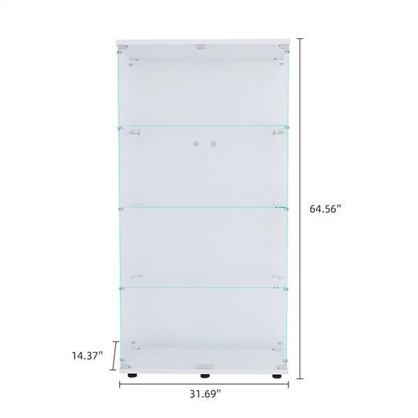 Two Door Glass Cabinet Glass Display Cabinet with 4 Shelves, White