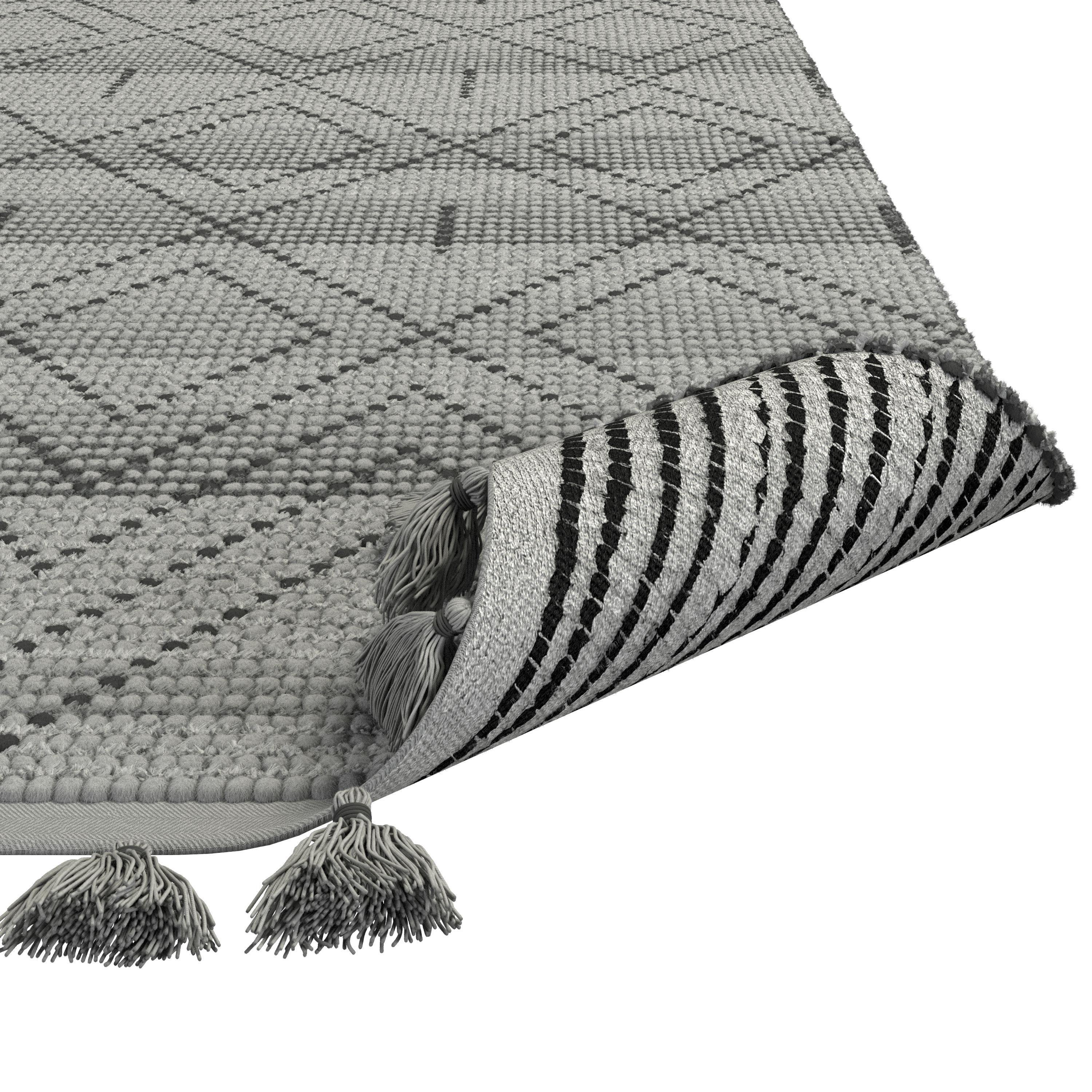 Handwoven by skilled artisans in India from a wool and cotton blend, the Vail Dowlan area rug features a modern geometric motif that showcases the genuine artistry of the hand-made rug in every detail. Neutral Gray and Charcoal will blend with most color palettes, while the medium pile height and unique weave add texture and softness underfoot. Elegant tassels adorn each end of this beautiful area rug. Backed by a durable cotton backing, a rug pad is recommended to help keep the rug from slipping. Materials: 80% Wool,20% CottonHand Woven by skilled artisans in IndiaGeometric design will complement a variety of stylesStylish tassels on the ends of the rugCrafted from 100% woolSome shedding is to be expectedRug pad is recommended (sold separately) to add cushion and prevent slippingContains Latex: NoSize (ft/in): 5' x 8'Care Instructions: Vacuum your rug regularly. Clean spills immediately by blotting any liquid with a clean, dry, un-dyed cloth. If heavily soiled, rugs may be cleaned professionally. Do not pull any loose ends; any frayed edges can be trimmed with scissors, if needed.