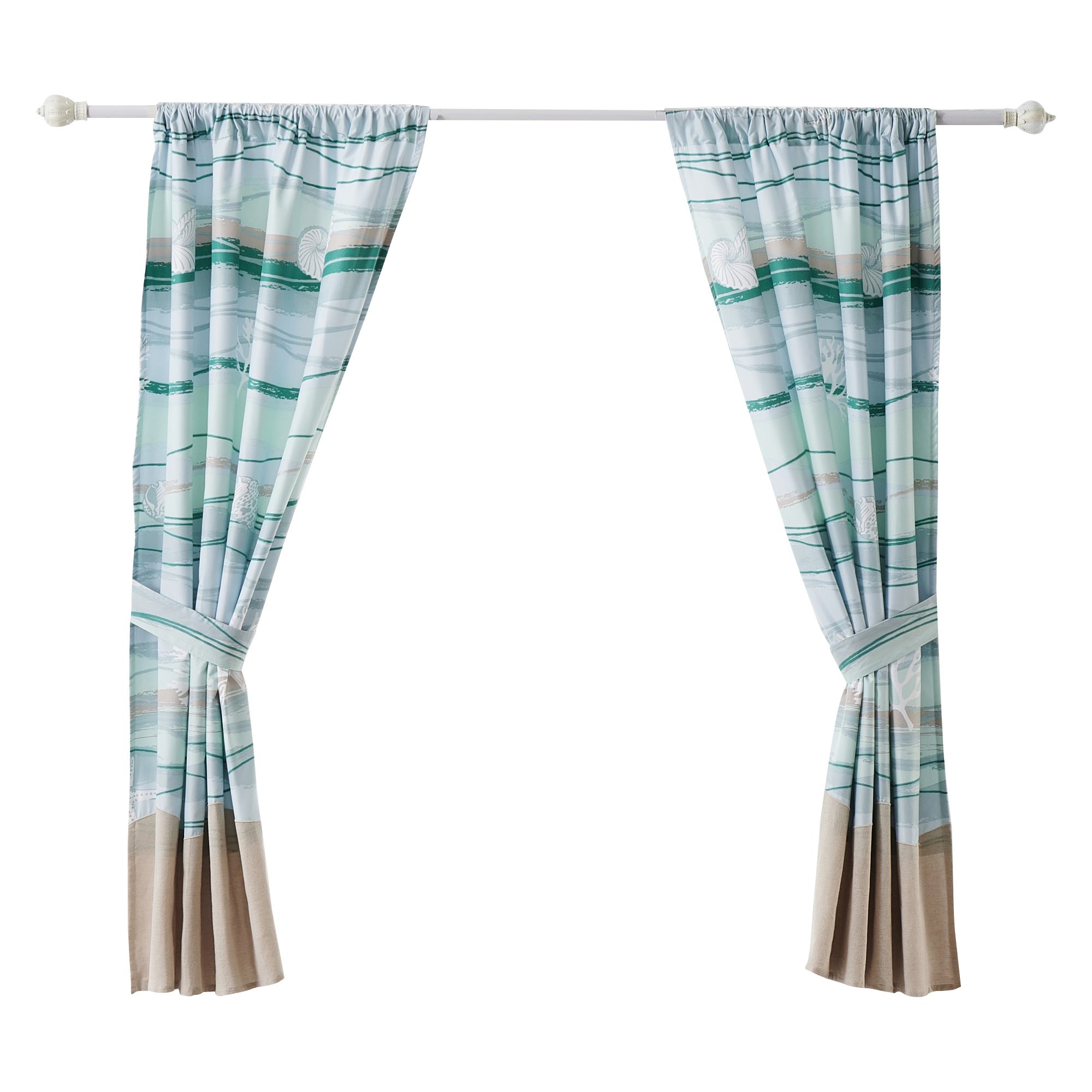 Home > Vira 63 Inch Window Curtains, Ocean Waves and Sand Print, Rod Pockets