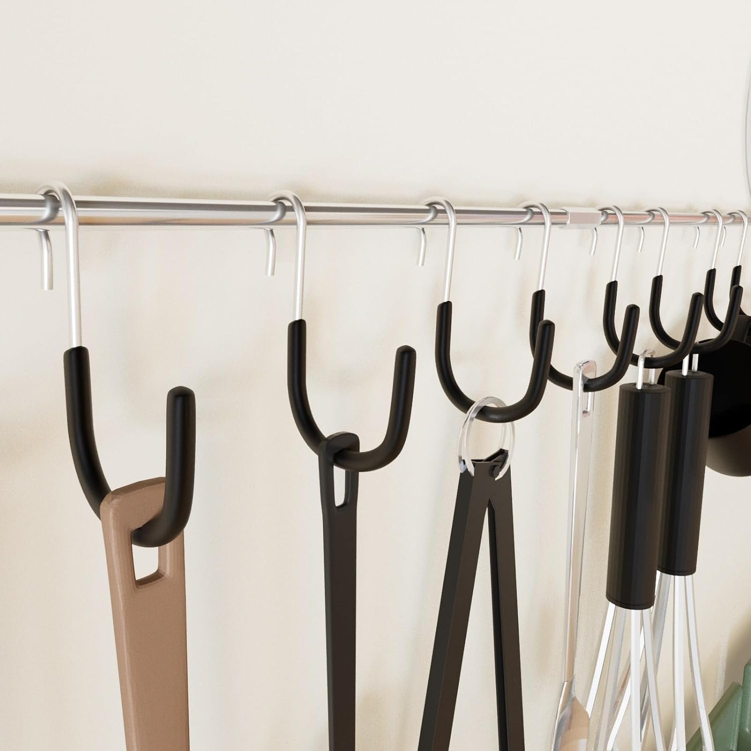 3.3. [Heavy Duty Hook] The detachable S-shaped hook is covered with a rubber coating to effectively reduce damage to items, it can hold 16.5 pounds of items, and with this tool manager, you can easily organize your POTS and pans hangers.