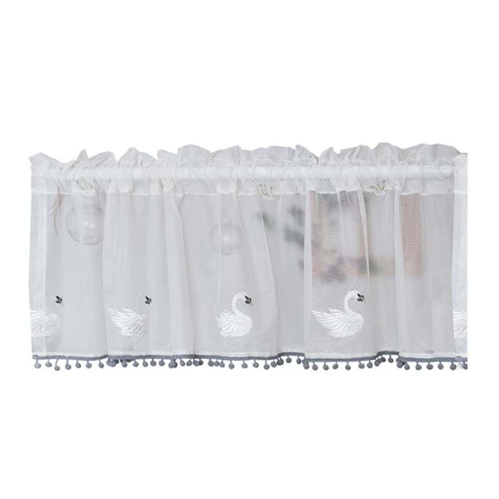 Home > White Embroidered Swan Half Curtain Tassel Short Valance Partition Curtain Doorway Decoration Tier Cafe Curtain,59x15 inch